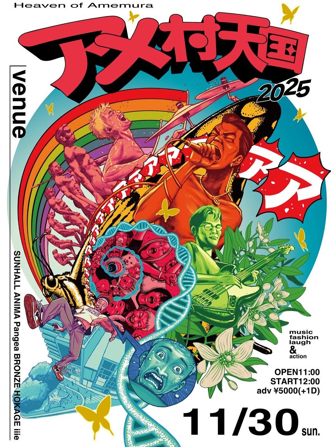 また、今年は『アメ天』に向けて東京・大阪でスピンオフイベント『THE ROAD TO アメ村天国2025』も開催。8月6日には、東京・下北沢Shelterで愛はズボーン、the dadadadys、シスターズハイが出演した。9月23日(火)大阪・心斎橋Pangeaにて、愛はズボーン、山田亮一とアフターソウル、ルサンチマンが出演する。