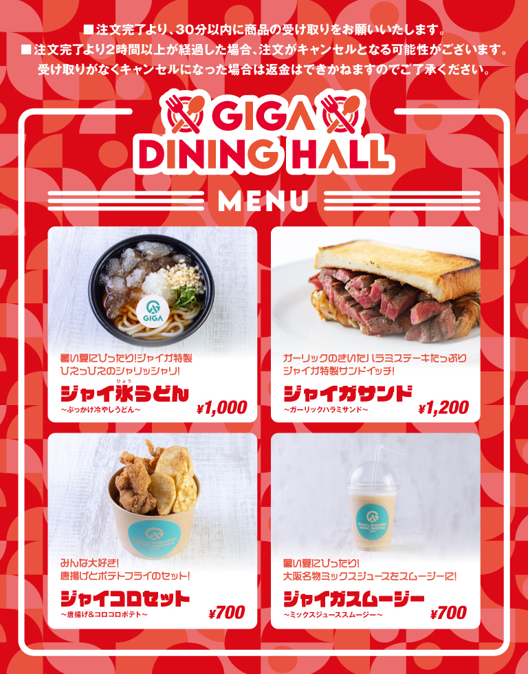 さらに、SKY AREA「GIGA DINING HALL」店舗では、ジャイガオフィシャルフードがモバイルオーダーで注文が可能。ブースでの待ち時間なしで、快適に味わうことができるのでおすすめ! 注文の詳細は公式アプリのバナーから確認を。