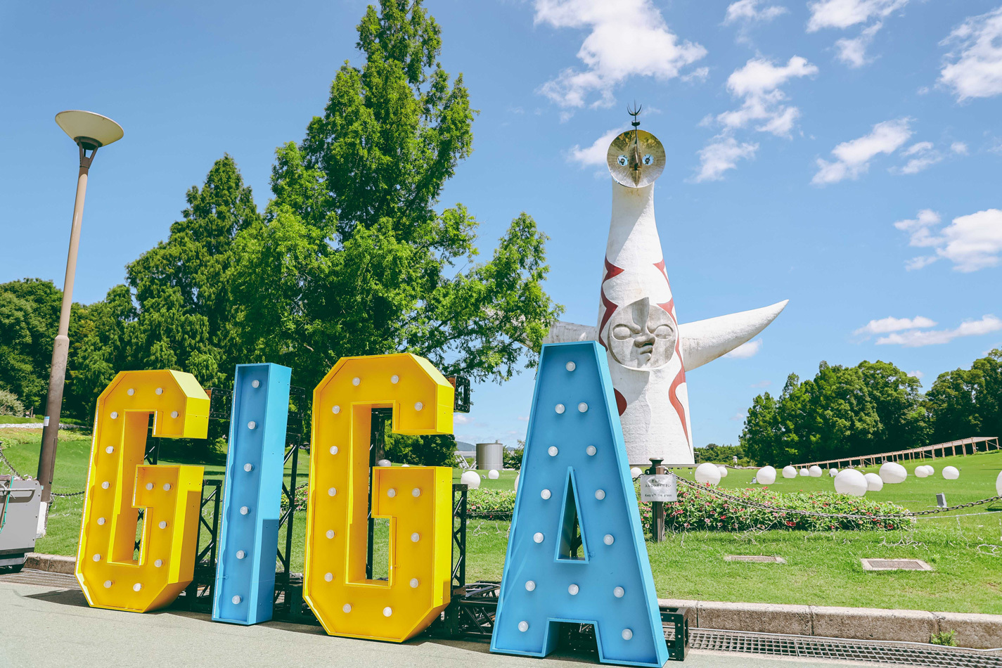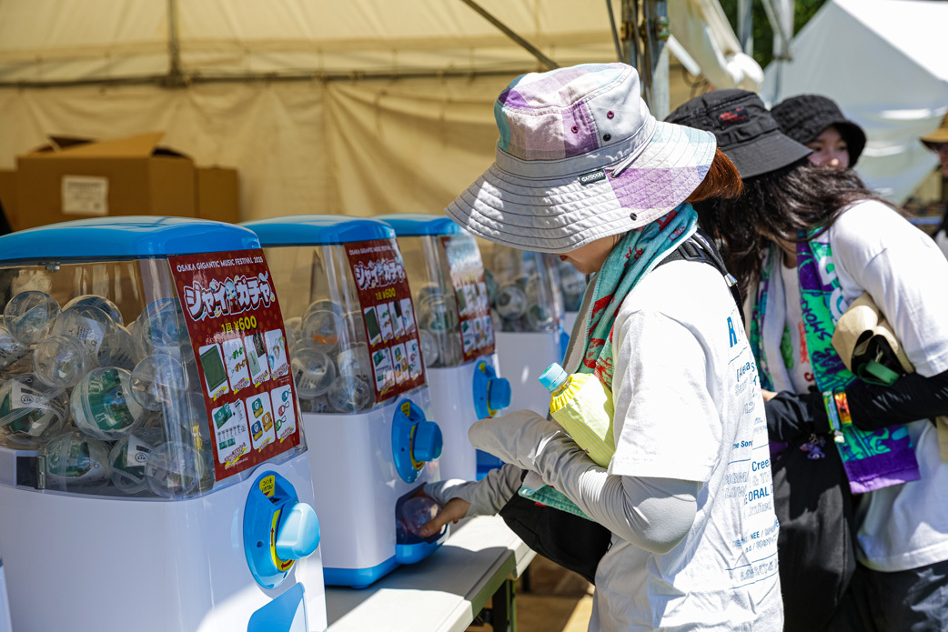 天候にも恵まれ、見事な快晴に。会場には、朝早くから多くの観客が詰めかけ、太陽の塔やフォトブースで記念撮影をしたり、物販やフードを早速楽しむ賑やかな光景があちらこちらで広がっていた。リストバンド交換所付近では、GIGA SPECIAL PERFORMERがダンスパフォーマンスで盛り上げる場面も。