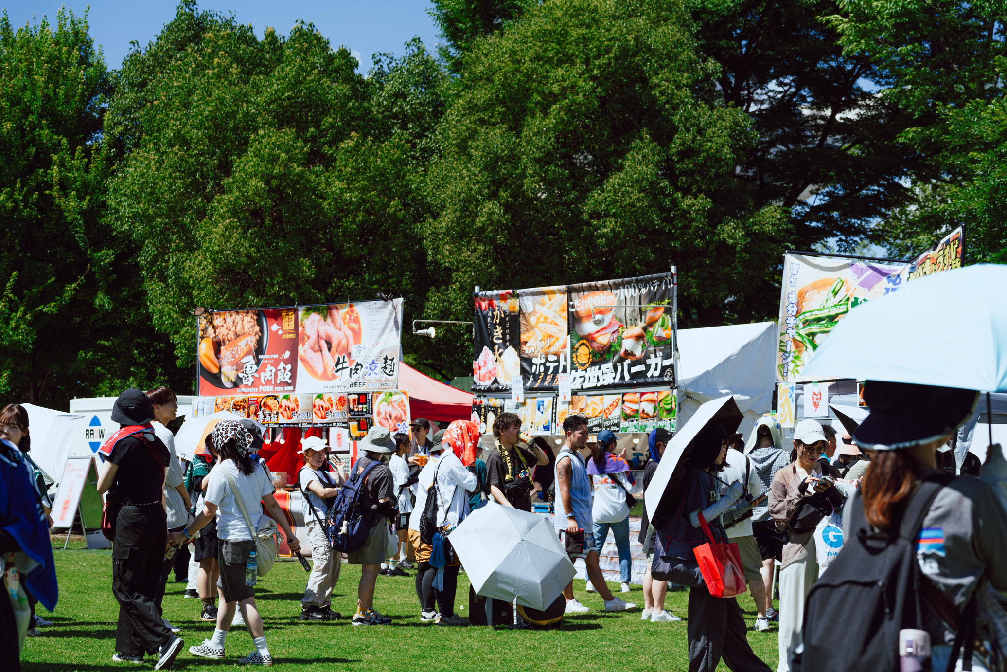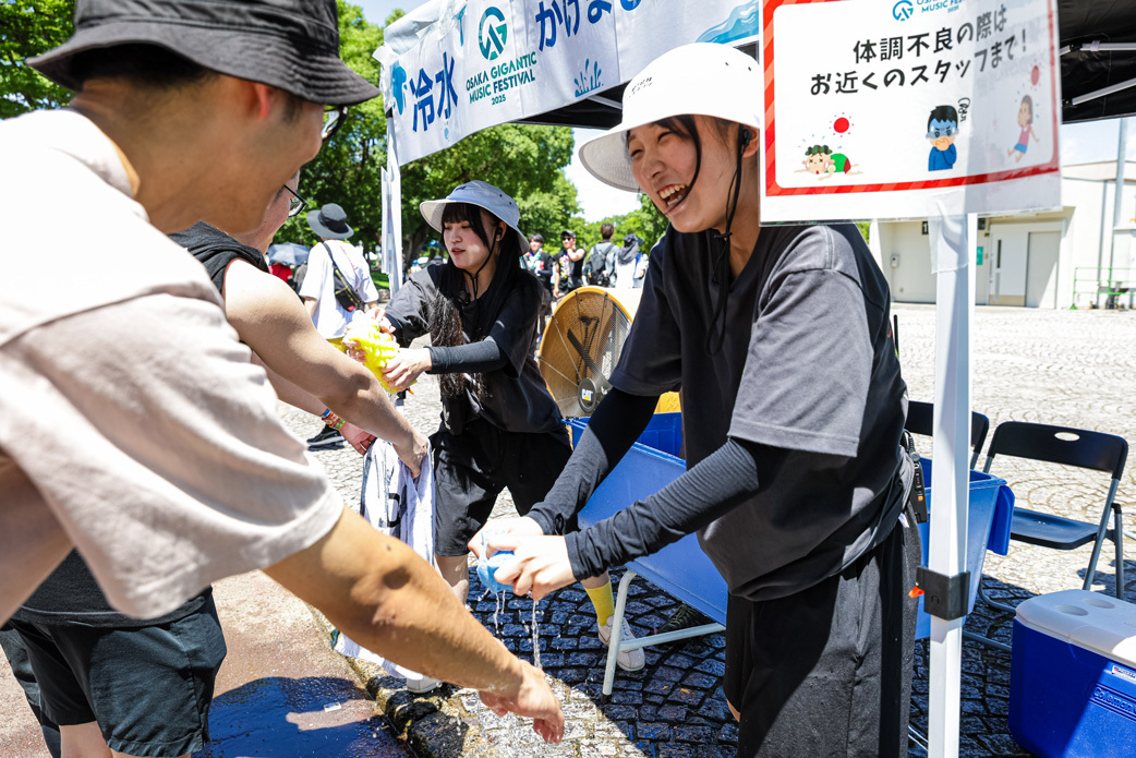 各ステージエリアの周辺には、暑さ対策で冷たい水をかけてくれる「冷水かけましょか?」ブースのほか、休憩所や日よけエリア、キッズ休憩所など各所に設置されているので安心だ。