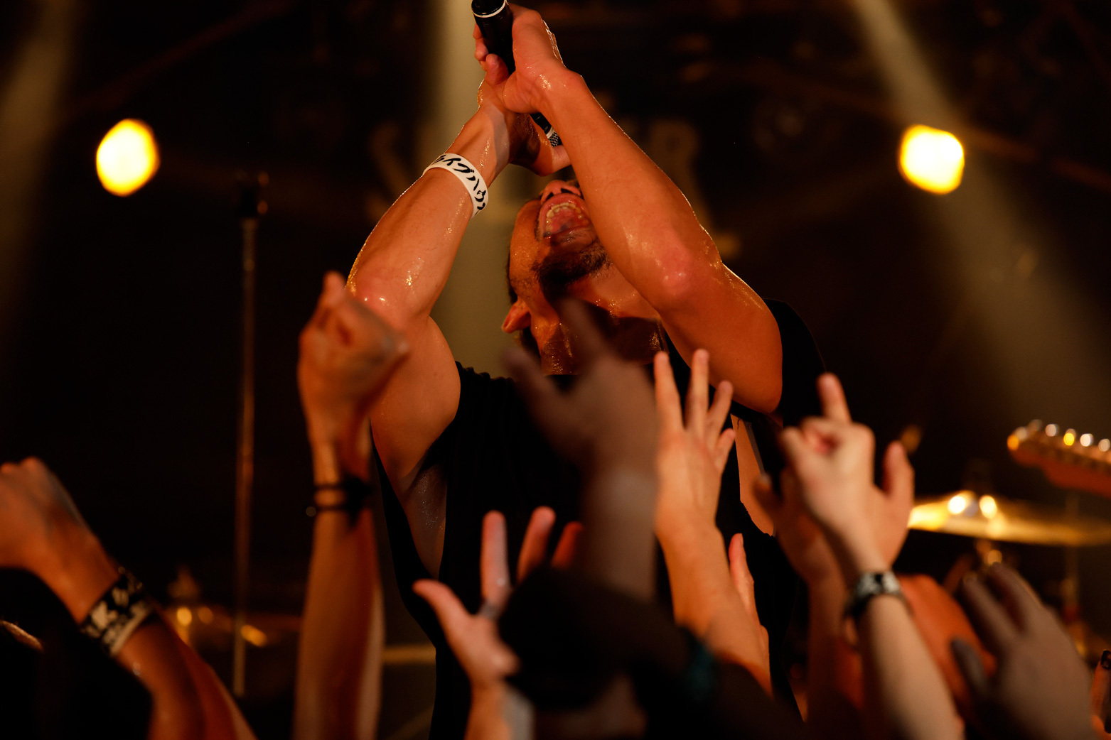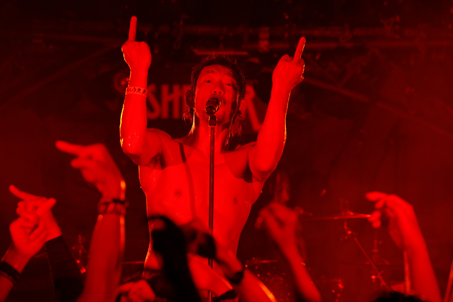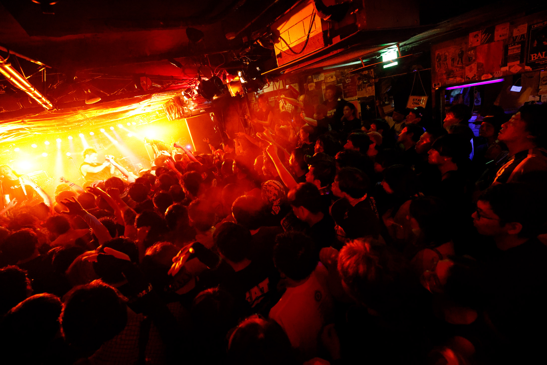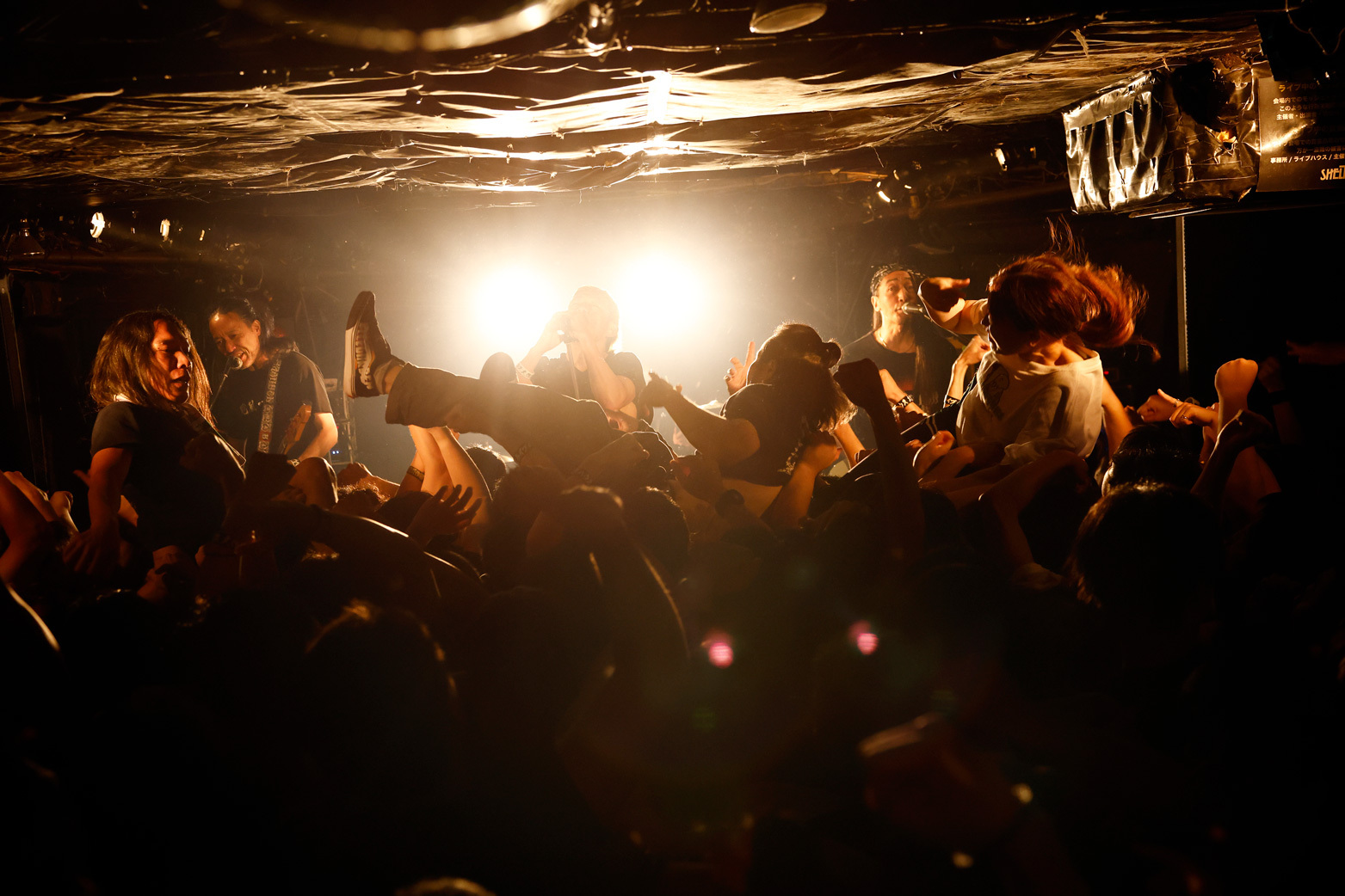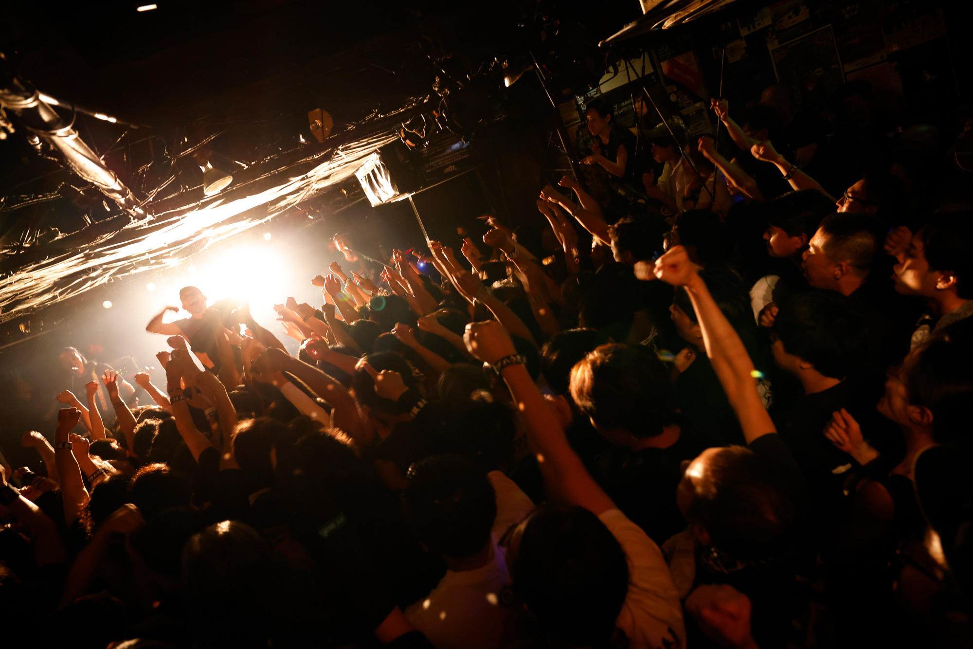 曲やメッセージに温度差がないからリズムは崩れず、また、曲順が偶然の符合を見せることでさらなるドラマが生まれる。最新作にあるモーターヘッドの「Ace Of Spades」のあとに「FLYING SAUCER」が続いた瞬間は、できすぎの流れに思わず叫び声が出た。英国バンドのカバーなのに阿波踊り状態になったフロアが、ポルカのカバーで「ええじゃないか」状態に突入していく様子は爆笑もの。ただ可笑しい、というわけではなく、無我夢中の空間で全身が解放されていく、そのことが嬉しくて笑いたくなってしまう感覚だ。実際はみちみちのパツパツで不快なはずなのに、どこまでが他人のものでどこからが自分のものかもわからない汗すら生の実感になる。つまり、気持ちがいい。
