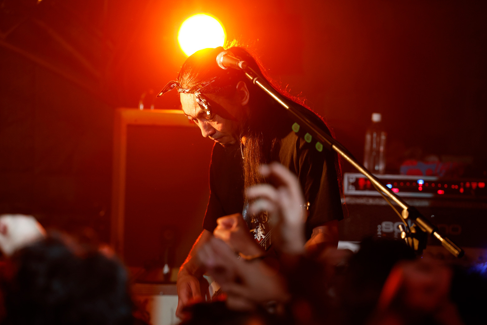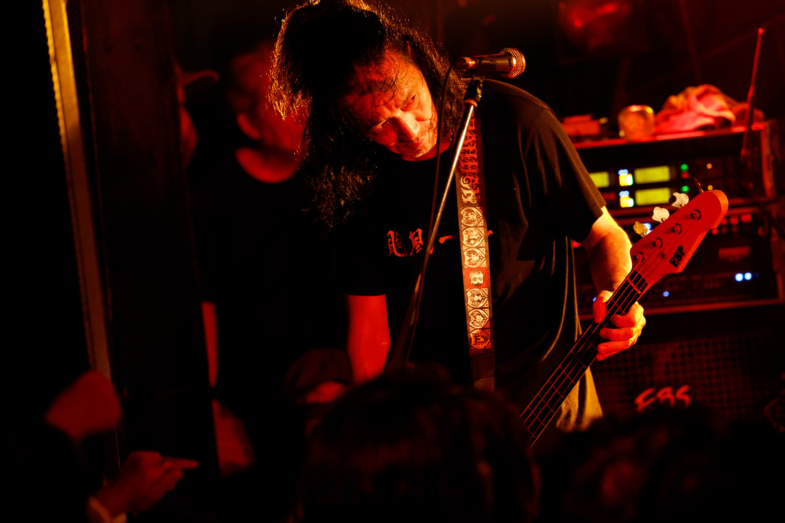 狂おしい叫びと切実な語りかけの中間を行くボーカルスタイル。フロントマンUMEDAの佇まいはまるでイアン・マッケイだ。これは30年前、どれほど異端でどれほど新しかったのだろう。極端にヘヴィなリフは一見凶暴だが、繰り返しループすることで奇妙なトランス感覚が呼び覚まされていく。ハードコアを怒りの音と定義せず、何か新しいものを生み出せる可能性と考えていたバンドの復活に、総じてノスタルジーはなかった。ここから何かが起こるのではないかと思わせる30分のステージ。たった4曲程度だが、フロアはずっと異様なテンションを保ったまま、ひたすら轟音に嬲られていた。