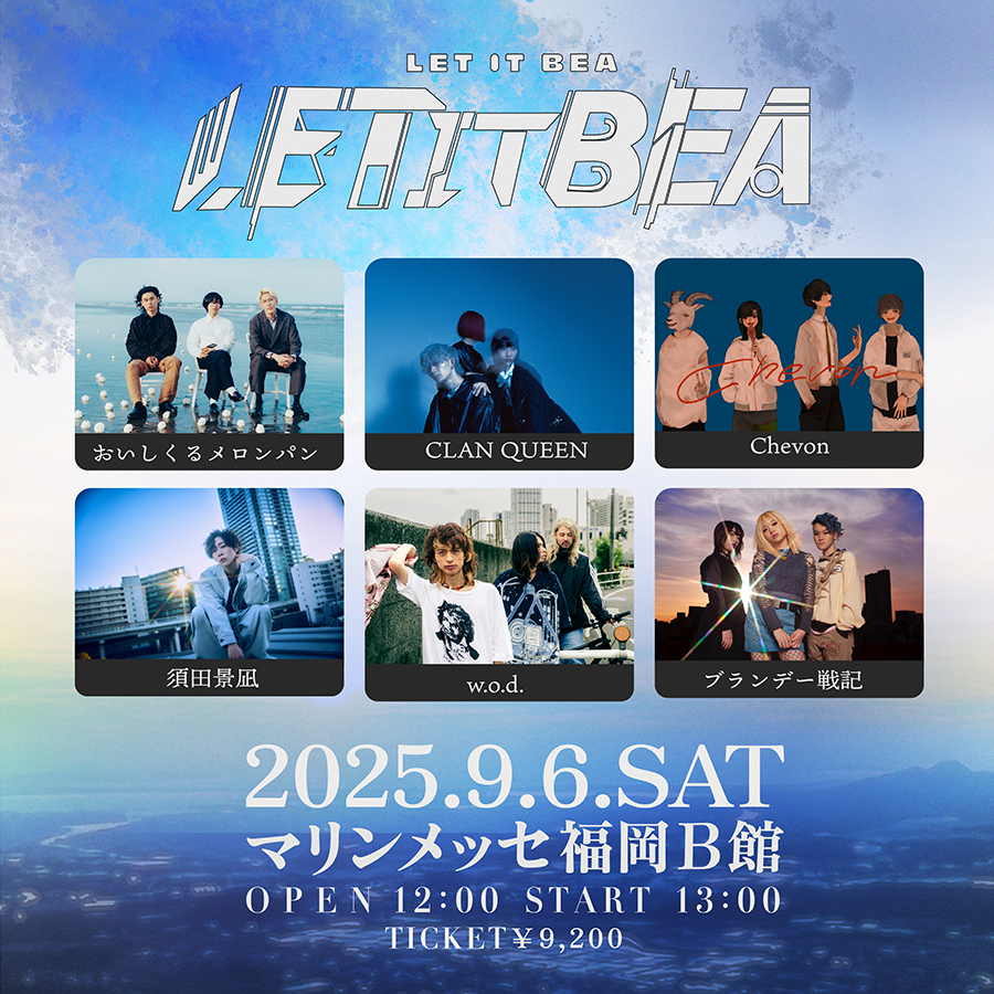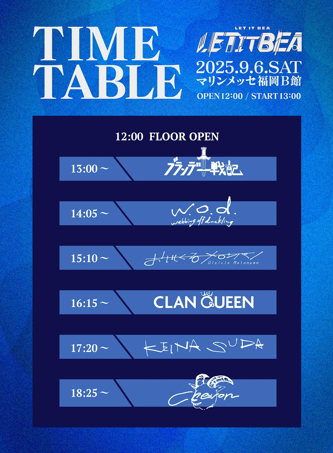 2025年9⽉6⽇(⼟)、福岡マリンメッセB館にて開催される⾳楽フェス『LET IT BEA』のタイムテーブルが発表された。