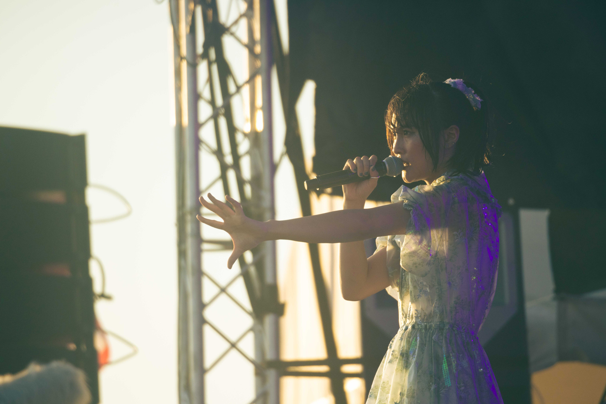 西日を全身に浴びる麗が、ドレスの装飾を乱反射させながらクルクルと回る姿はスター性もたっぷりだ。そんな彼女が「今日を忘れられない日にしよう!」と呼びかけると、後半戦は人気曲の「未恋」から。ロック色を濃くして<君に会いたい>の言葉でファンに魔法をかけ、そこからポップでダンサブルな「Hey!Calling」へとつなげれば、会場にはワイパーもクラップも。