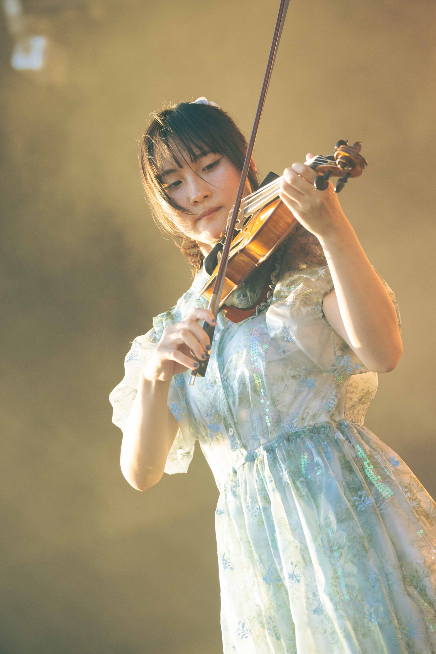 『RUSH BALL 2024』が中止だったため、昨年初出演を果たせなかった4人組が、メンバーチェンジも結成5周年の節目も超え、初日ATMCの17:35~という昨年同様のタイムテーブルでリベンジのステージに。もちろん始まりの合図は、麗(Vo.Gt.Vln)の「あなたをとりこにしに来ました!」のひと言で、まずは「白い坂道をくぐったら」のアイリッシュのムードやポエトリーリーディングでいっきに観客を引きつける。