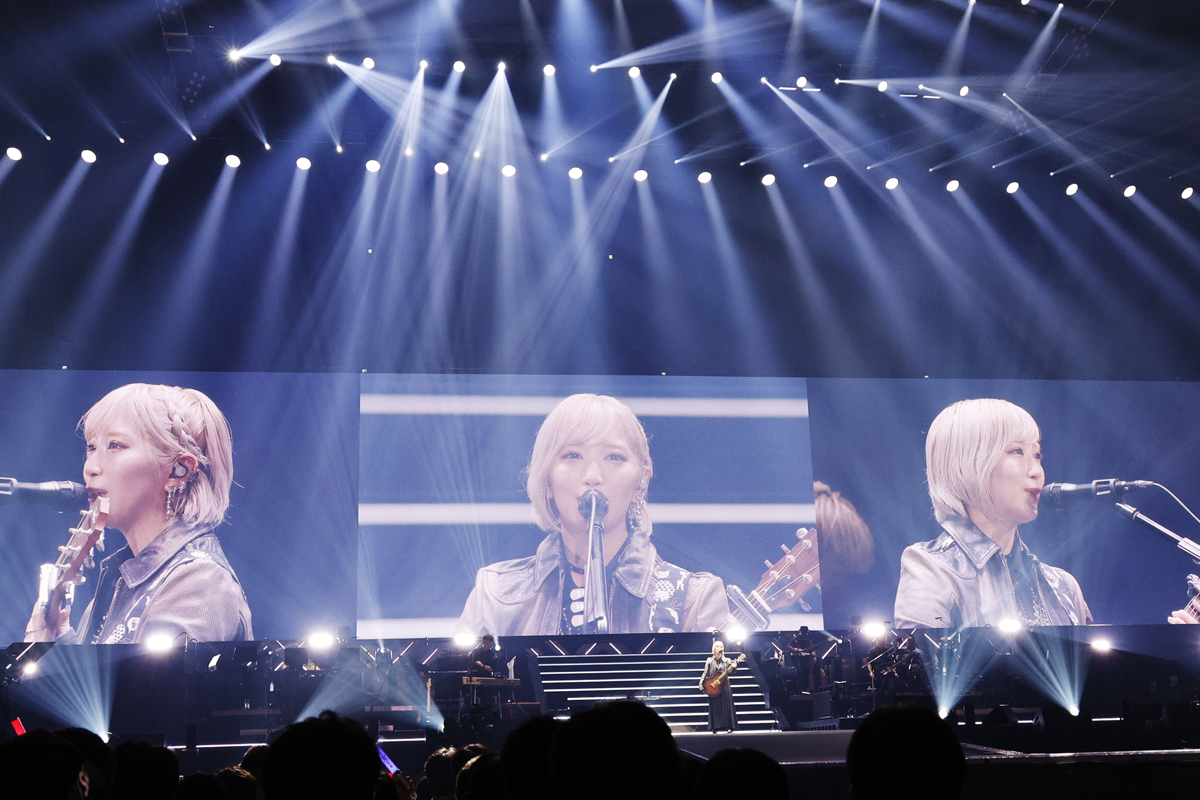 そして最新シングル、TVアニメ『アークナイツ【焔燼曙明/RISE FROM EMBER】』オープニングテーマ「End of Days」へと続けられる。当日と同じ衣装を纏った自身のMVを背負って歌い上げるその姿はデビューの頃から比べ物にならないほど頼もしい。