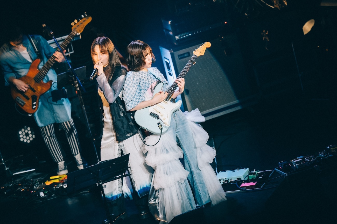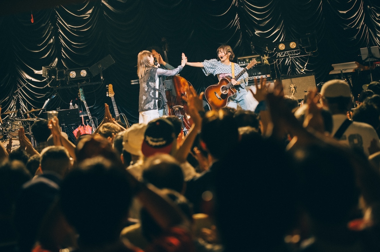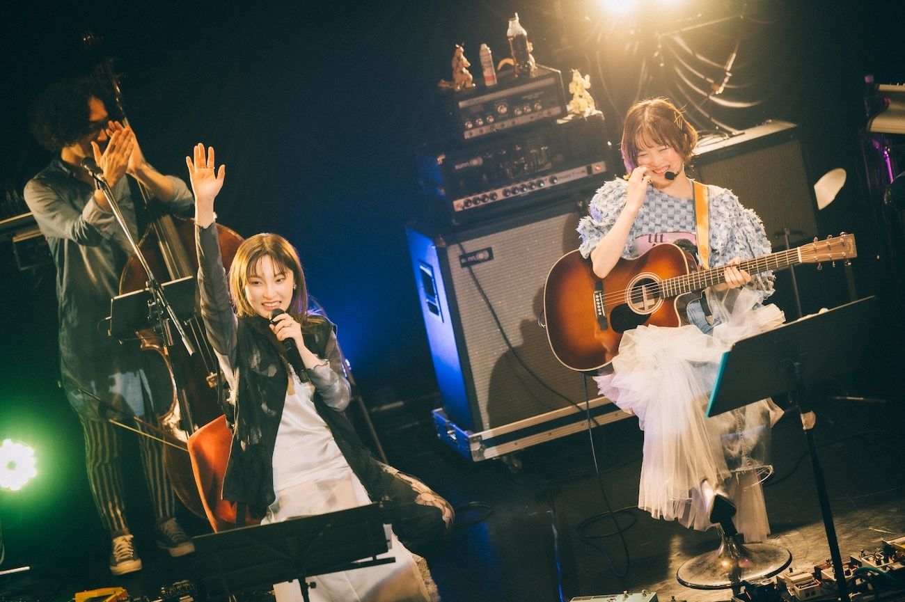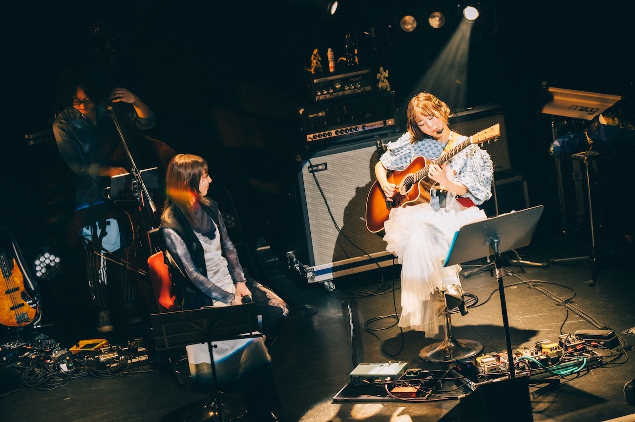 曲を書いて歌い、10数年間夢を追い続け、ときに傷ついたり葛藤したりしながらも、これからまたそれを続けていこうと決めているそれぞれのリアルな思いが、あたたかくて少しだけ切なさもあるメロディに乗せて優しい声で歌われた。途中からバンドも演奏に加わり、カントリーっぽく展開していく曲構成もよかった。胸に沁みる、本当にいい曲。歌い終えて「いい曲だったよね」「形にしたいよね」「リリースしたいよね」「したいしたい」とふたり。この一夜の共演と、それによって生まれた「わたしたち」という共作曲は、間違いなくこれからのふたりの音楽人生においての糧となるに違いない。