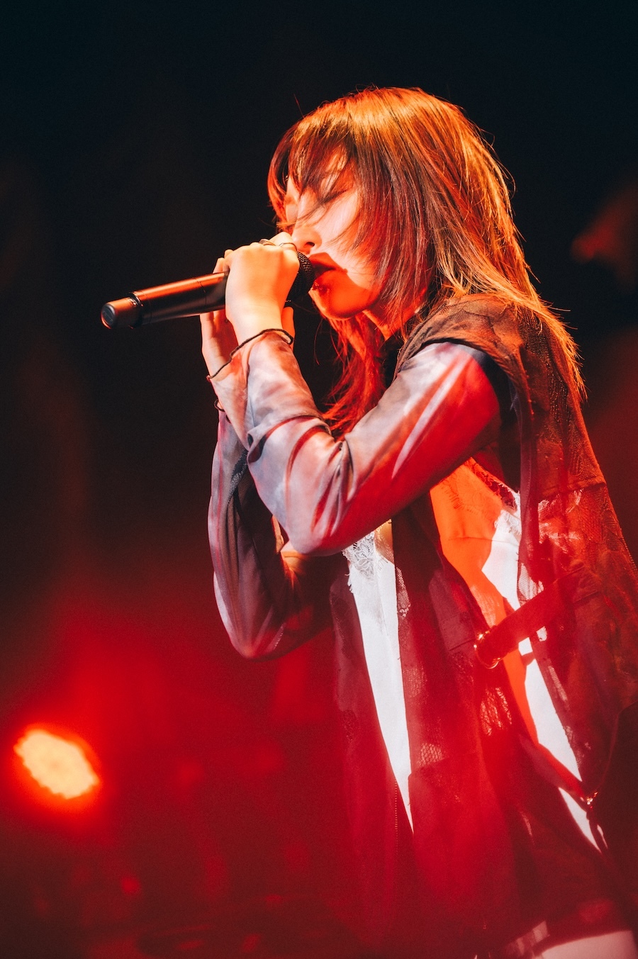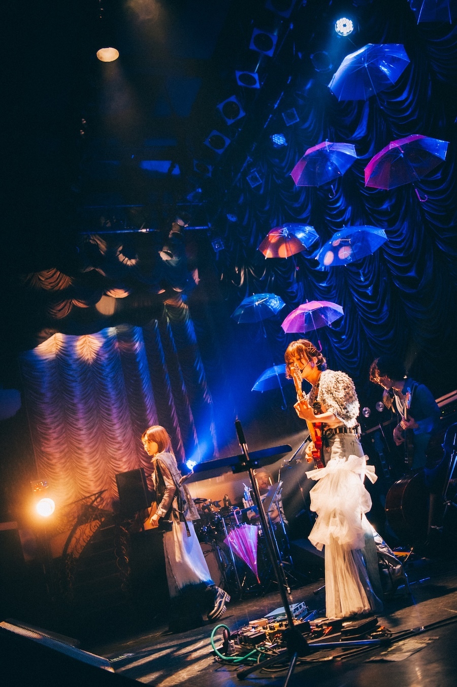 ここから再びReiのコーナー。以前のインタビューで「私自身を象徴する曲」と言っていた「GUITARHOLIC」に始まり、5曲続けて激しい曲、盛り上がりまくる曲、じっとして聴くなんてできっこない曲を演奏した。これでもかとばかりに耳をつんざくギターソロを弾き倒して圧倒した「GUITARHOLIC」、「キネマ倶楽部、本気を見せてくれますか?!」と煽って始めた「Lonely Dance Club」、「一緒に歌える?」と言って“Run, run away, run away~”の箇所をオーディエンスとシンガロングした「RUN,RUN,RUN」、アコギでカントリーテイストの陽気なメロディを弾き始めて中盤からフライングVに持ち替えブギへと展開させた「New Days」(サングラスをして台上でプリンスのように弾き倒した間奏のギターソロは鳴りもインパクトも出色。弾き終えてサングラスを無造作に投げ捨てたのもかっこよかった!)。そして本編の最後を飾るに相応しい「What Do You Want?」だ。「東京、準備はいいですか?! アー・ユー・レディ?! 自分の欲しいものは自分で手に入れるんだよ!」と煽って演奏を始め、バンド、オーディエンスと一体となって凄まじい爆発力を見せたこの曲の熱量はちょっと尋常じゃなかった。