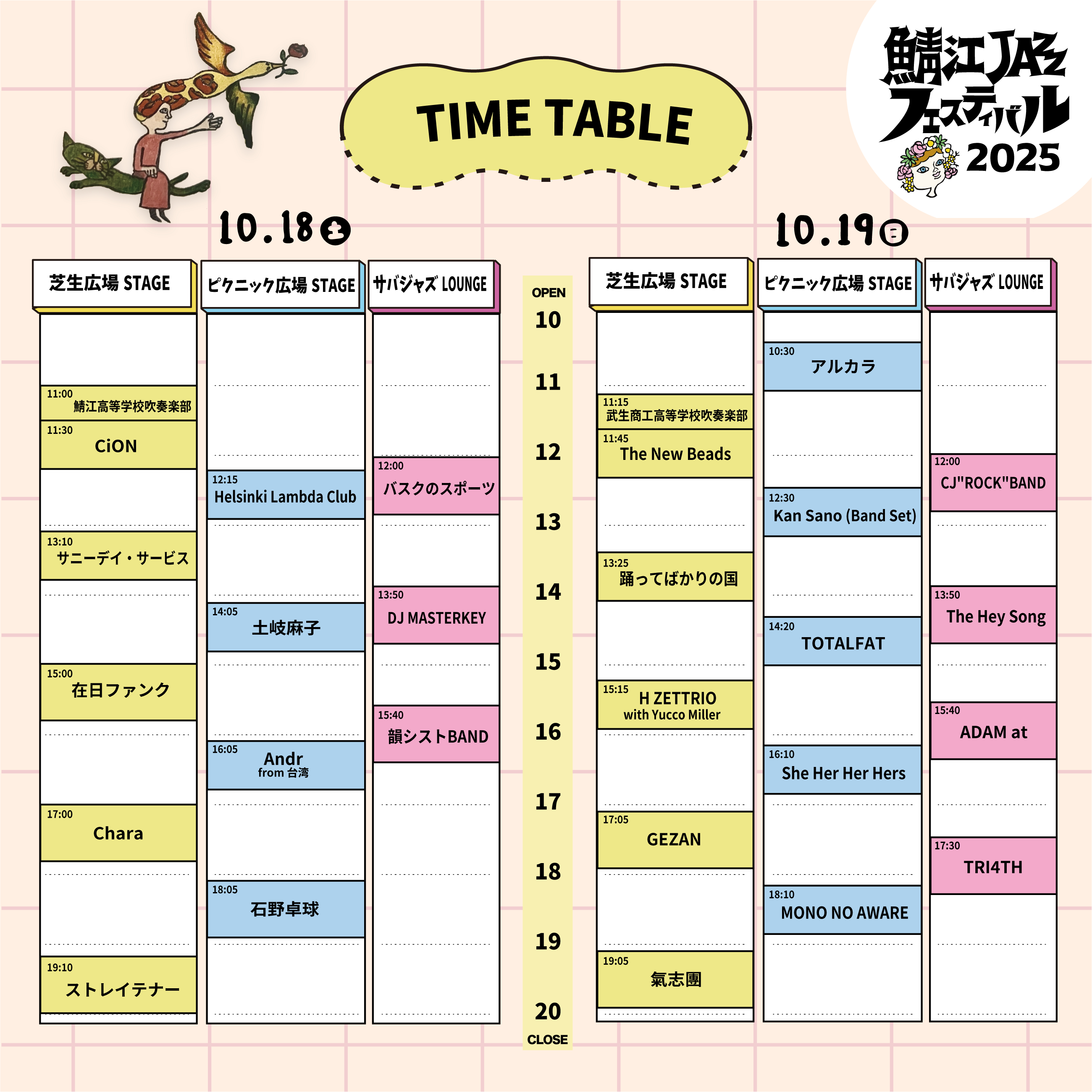 10月18日(土)・19日(日)の2日間にわたり、福井県鯖江市の西山公園で開催される『鯖江JAZZフェスティバル 2025』から、ライブステージのタイムテーブルが公開された。