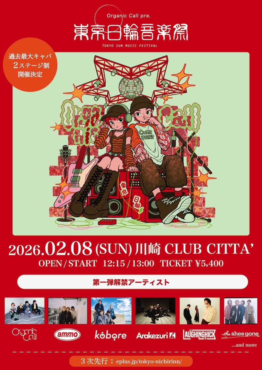 2026年2月8日(日)に川崎CLUB CITTA’にて開催される、Organic Call主催『東京日輪音楽祭』の第一弾出演アーティストが発表された。