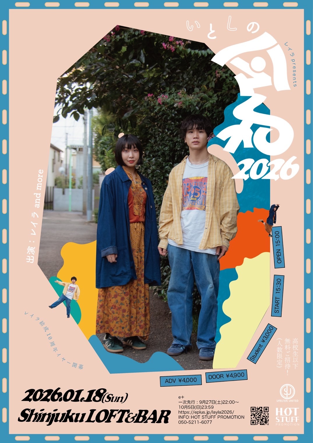 レイラの主催企画『いとしの令和』が、2026年1月18日(日)に東京・新宿LOFT&LOFT BARで開催されることがわかった。