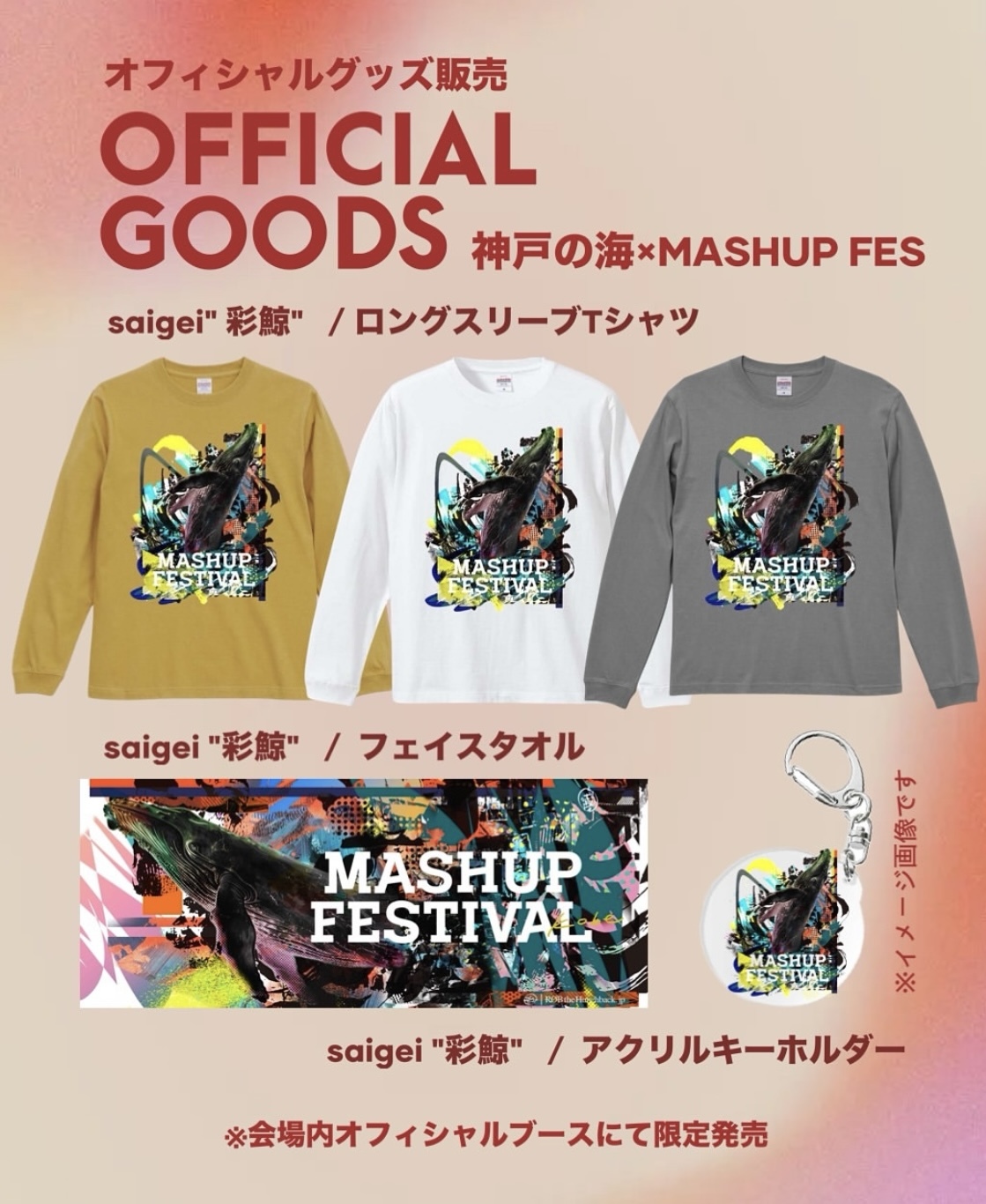 “神戸の海×MASHUP FESTIVALのビッグスケール”をテーマに、美しい鯨「saigei “彩鯨”」をメインモチーフとしたオリジナルグッズも登場する。