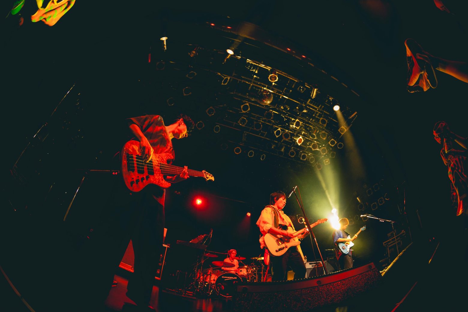 開演を待つ間、場内に流れていたのは「FM SAKAI」の音声。山村隆太(Vo)と阪井一生(Gt)が中学時代に自宅で制作していた幻のラジオ番組を原点とし、特典企画などでお馴染みだったトークプログラムが久しぶりに復活したのだ。アットホームな雰囲気で開演前からファンをもてなそう、というホスピタリティが伝わる演出だった。阪井がパーソナリティーを務めツアー中代わる代わるメンバーが出演してきたが、この日のゲストは山村。トークが終わると、背後でうっすらと響いていた水音が次第に大きくなり、いよいよ開演の時が来た。