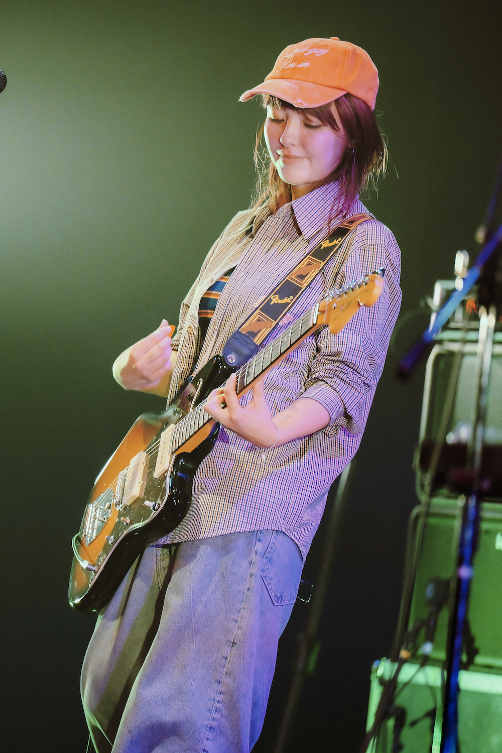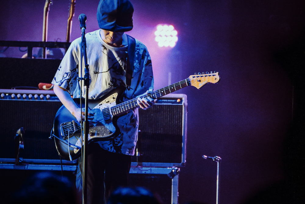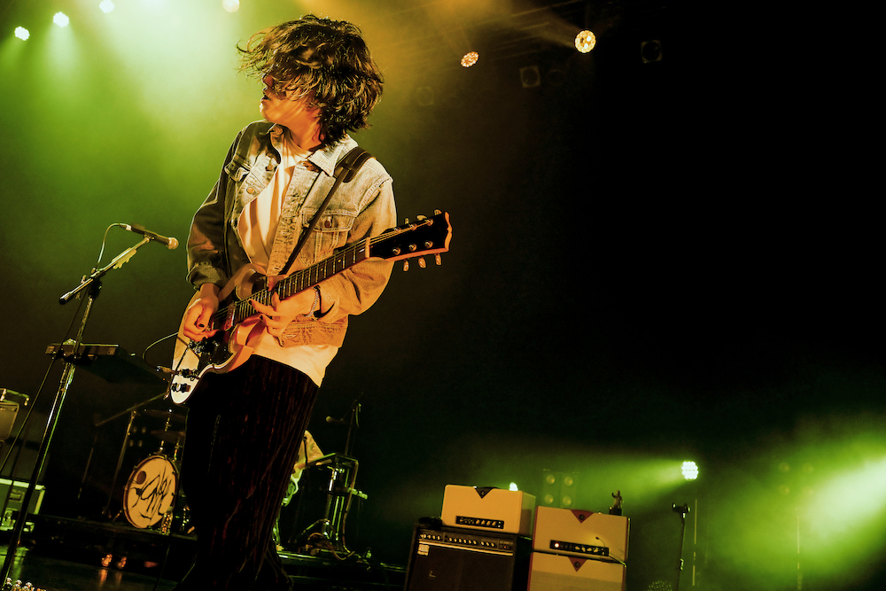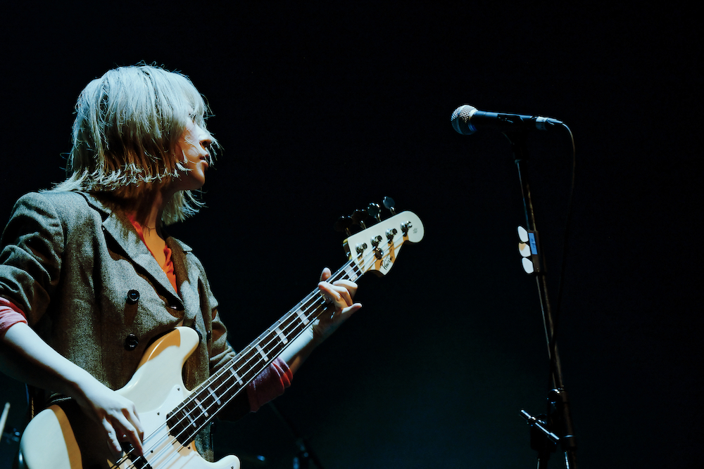先にパフォーマンスを終えたストレイテナーのライブを観て、改めて感化されたという牛丸。自身がコピーした楽曲を惜しげもなく演奏した姿から「有名な曲を聞けるって嬉しいね、「アボカド」もっとやろうって思いました」と素直な感想をMCで述べると「学んでる〜」とごっきんが緩く返す。「あのこのゆくえ」に「スラッカー」とキャリアを彩るナンバーに昨年発表のアルバムから素朴なミドルチューン「愛しあって」を繋げるなど、活動の全てを余すところなく見せようという気概に溢れたセットリストだ。「Homing tour」ではセットリストの被りを極力避け、ライブをルーティンワークにしないように注力しているとのことで、まさに自分たちへの挑戦だ。2020年のアルバム「健全な社会」からの唯一の披露となった「あかるいみらい」も、今年頭にリリースされたドリーミーな「Without you」も、分断されることなくyonigeの豊かな表現の海の中で同居している。