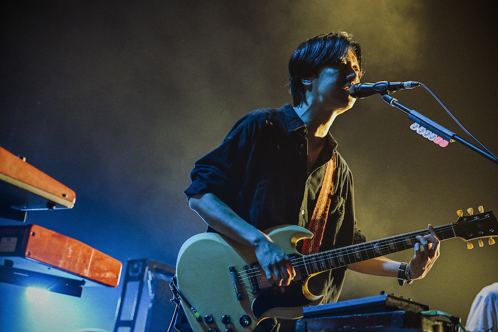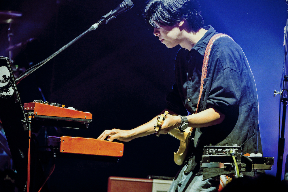 「知り合ってからだいぶ長いけど疎遠だった」とMCで振り返るホリエアツシ。対バンの機会に感謝し、yonigeに送るセットリストを宣言して始めたのは「246」。ナカヤマシンペイのドラムに“ひなっち”こと日向秀和のベース、そこに大山のギターとホリエアツシの歌が重なって東京の乾いた空が描かれる。立て続けに物々しいベースラインの「宇宙の夜 二人の朝」に暴風雨のようなアンサンブルの「シンデレラソング」、付点8分のディレイとキーボードの連なりで空間をたっぷりと使う「Skeletonize!」でライブ全体の流れに波が生まれる。