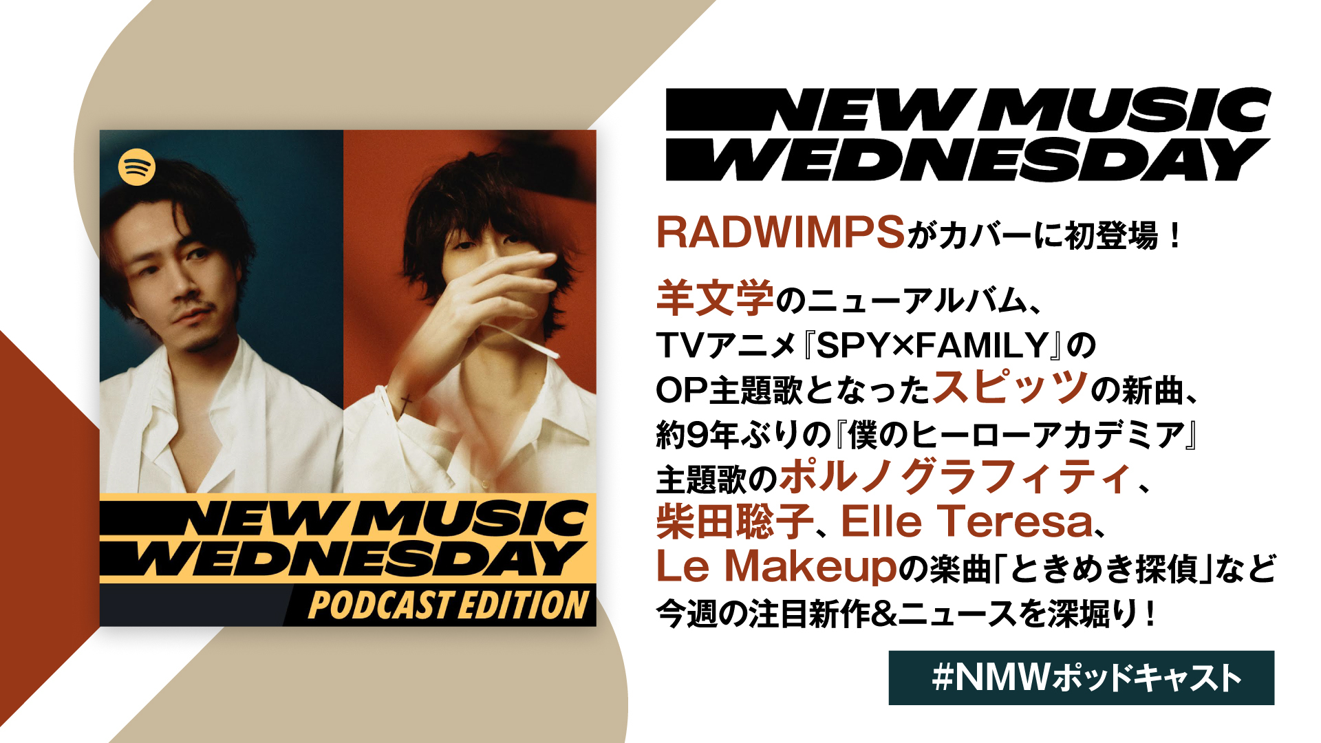 今週は、RADWIMPSがニューアルバム『あにゅー』をリリースしてカバーに登場! 羊文学のニューアルバム『D o n’ t L a u g h I t O f f』、TVアニメ『SPY×FAMILY』Season 3のオープニング主題歌のスピッツ、約9年ぶりに『僕のヒーローアカデミア』オープニング主題歌担当のポルノグラフィティほか柴田聡子 x Elle Teresa x Le Makeupによる新曲「ときめき探偵」もピックアップ&この1週間の気になる音楽ニュースも深堀り! さらにアーティストのライブやフェス情報も掲載しているので要チェック。番組への感想やリクエストはSpotifyアプリのコメント機能から投稿を。