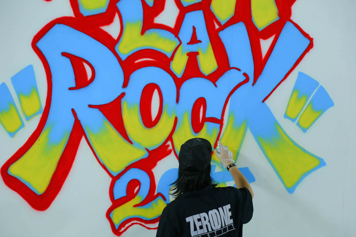 驚くべきことに、今年のロゴは「手描き」だ。概要を聞いたときには正直、まず「どういうこと?」と思った。簡単にいうと、HIP-HOPのストリートカルチャーでお馴染みのグラフィティを巨大なパネルに描き、それを超高画質のデジタル中判カメラで撮影、取り込んだデータをリアルタイムで加工し、ロゴとして仕上げるという、通常のセオリーからは逸脱した手法が取られている。