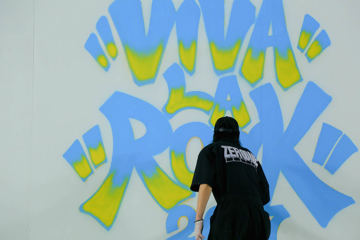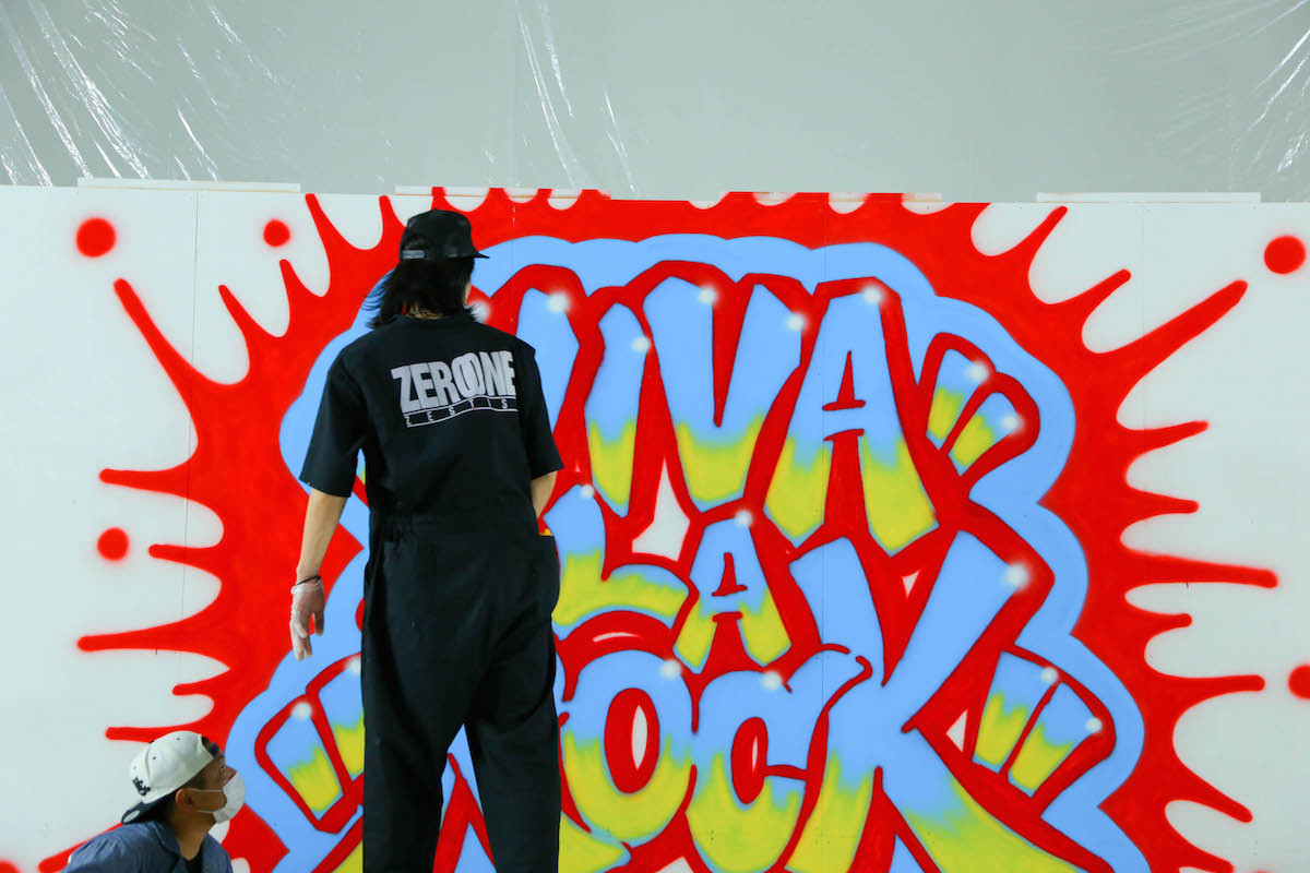 一発勝負。このスリリングかつワクワクする試み——冒険といってもいい——を実現させたのは、ビバラのプロデューサー・鹿野淳のインスピレーションと遊び心、グラフィティアーティスト・AZIの技術、そして両者がこのプロジェクトに注ぎ込んだ情熱に他ならない。そしてこの両者を結びつけたのがUVERworldのTAKUYA∞であるという事実は、音楽がつないだ人の縁というものを実感させてくれると同時に、ロックそのもののの可能性、ビバラというフェスが狭義のロックだけではなく広くポップカルチャーへと裾野をひろげていこうとしていることの、象徴のようにも思える。