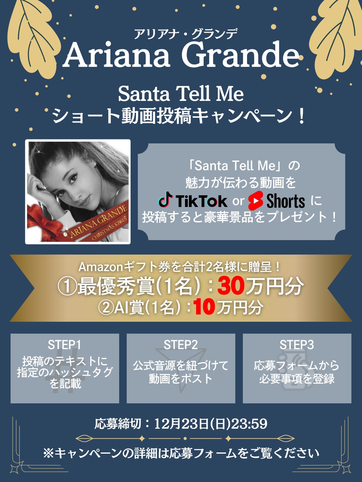 アリアナ・グランデ「サンタ・テル・ミー」リリース10周年記念 豪華賞金ショート動画投稿キャンペーンが始動