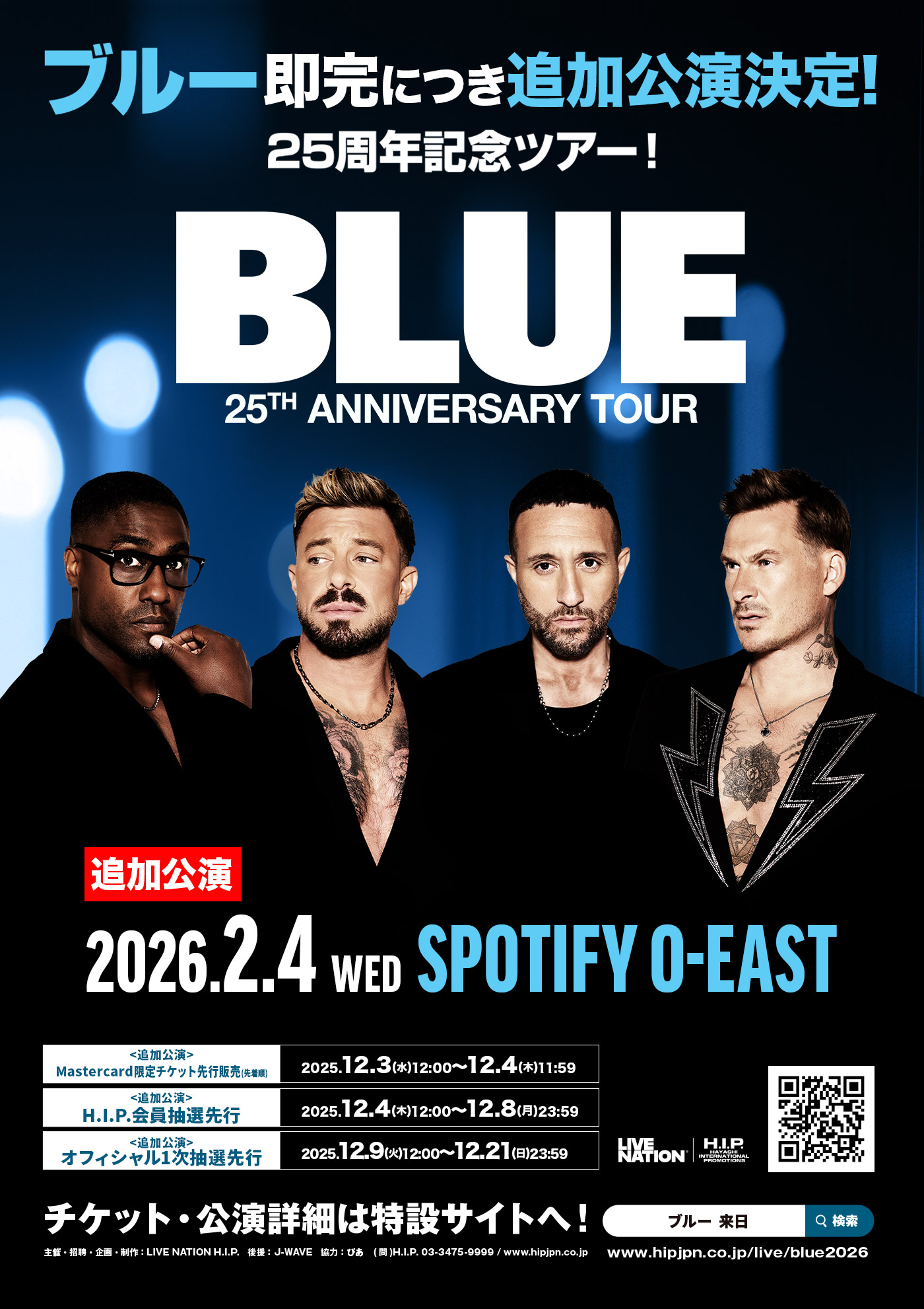 イギリス出身の4 人組ボーイズグループ Blue(ブルー)の来日公演は、応募が殺到し、即日ソールドアウトとなった。これを受け、急遽追加公演が決定。