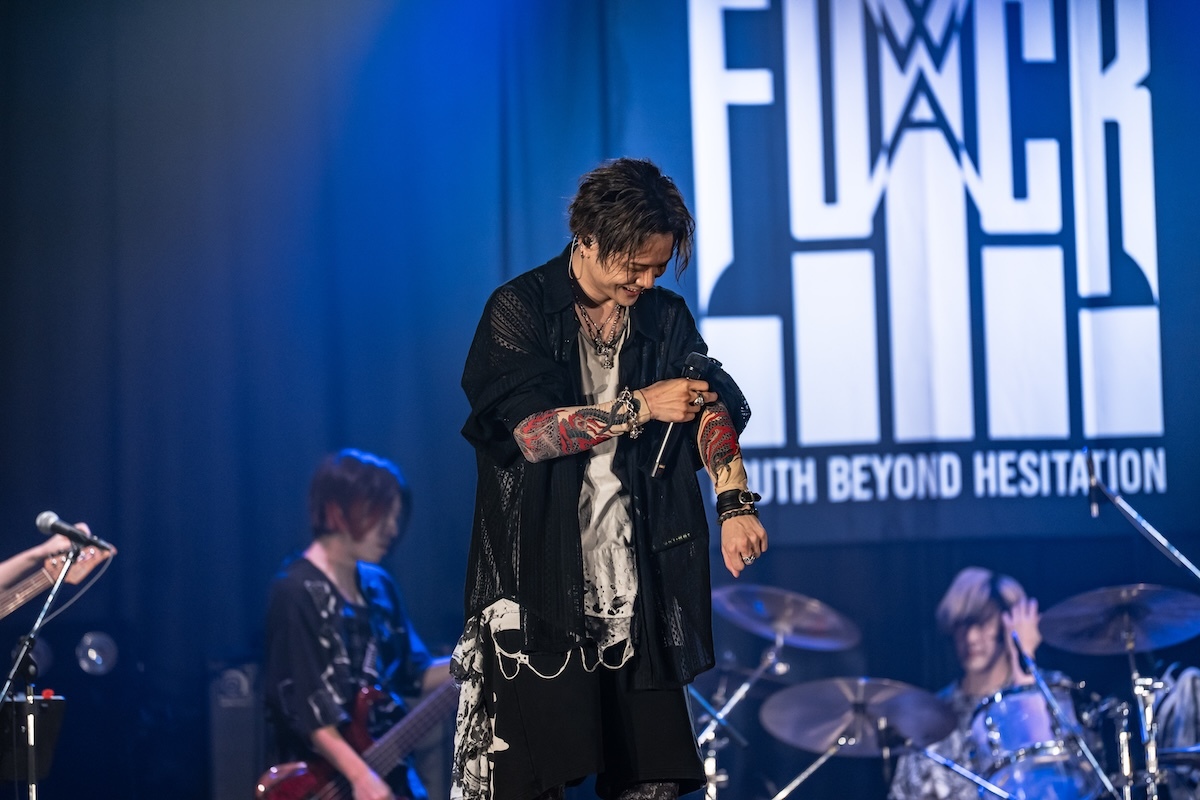 あらきから貰った誕生日プレゼントの『龍が如く』刺青アームカバーを着用してステージに戻ってきたKOOL&あらきのツインボーカルで披露された「S.O.S」と「ロキ」は、交わされる歌声のコンビネーションが絶妙極まりなかった。歌いながら2人が浮かべた表情からも、共演を心から楽しんでいるのが伝わってくる。「なんと仲睦まじい2人だろう」とあの場にいた誰もが感じたと思うが、コラボステージが終了してあらきがステージからハケるや否や、刺青アームカバーを脱いで床に叩きつけたKOOL。「投げ捨てた!」「外すな!」と非難の声を上げた観客に対して「うるせーな、このやろう!(笑)」とブチ切れている姿が、なんだかとても可愛らしかった。KOOLのツンデレ気質が垣間見えた気がする。