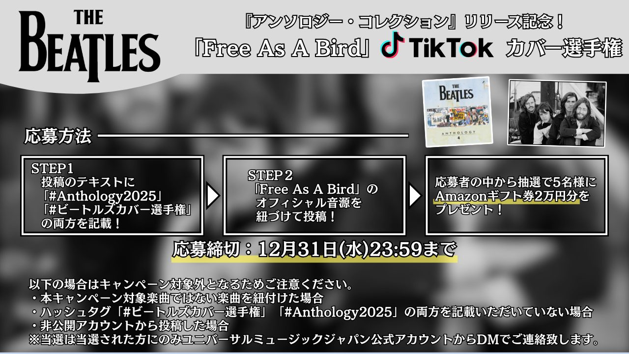 ※ハッシュタグ「#ビートルズカバー選手権」「#Anthology2025」の両方を記載していない場合、キャンペーン対象外となる。