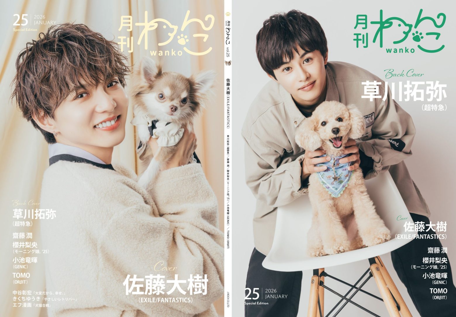 超特急・草川拓弥がトイプードルと月刊わんこ表紙に初登場&EXILE、FANTASTICS佐藤大樹がチワワと月刊わんこSpecial Edition表紙に初登場