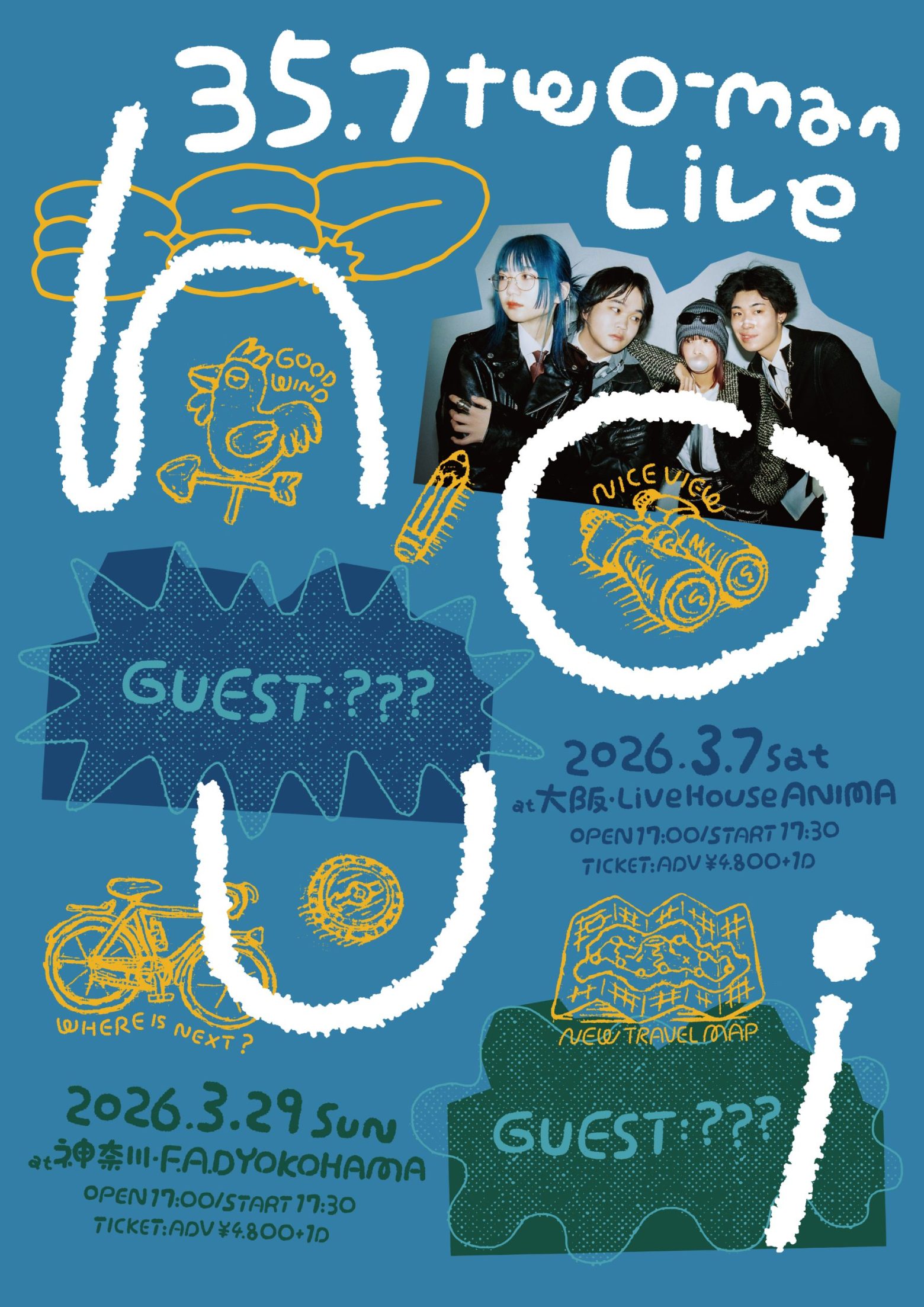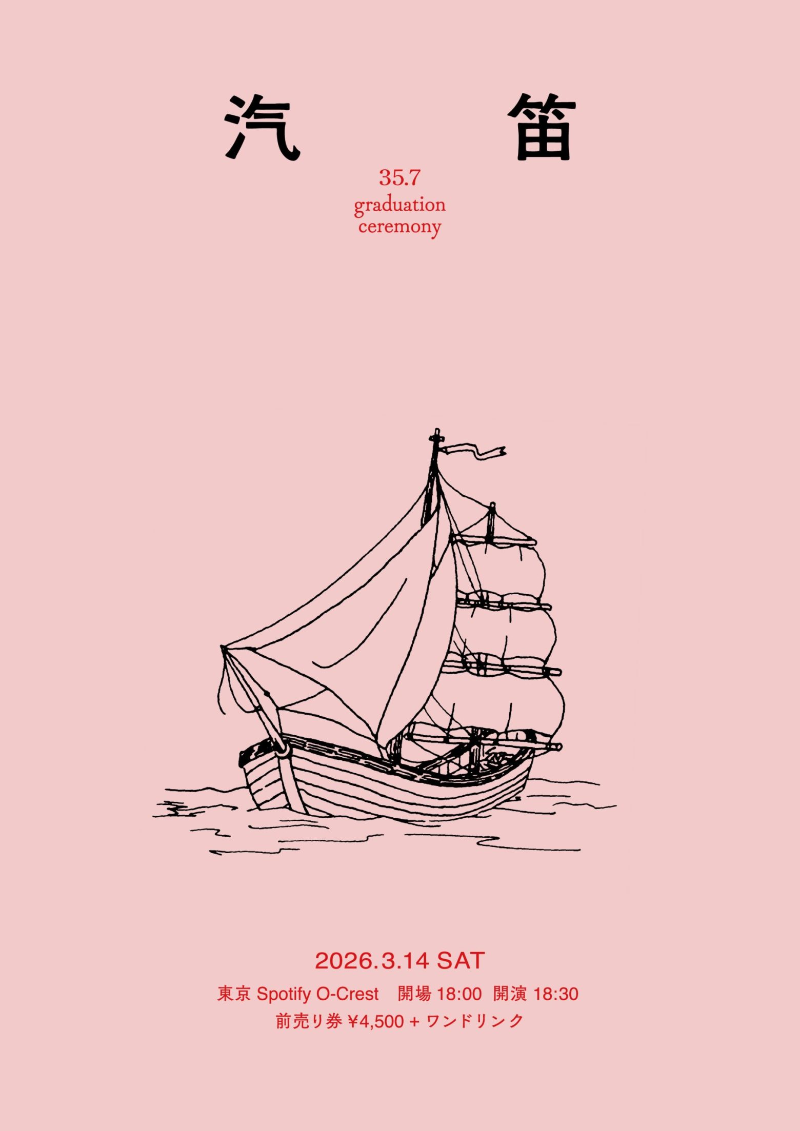 来年2月にはVo/Gtたかはしゆうの弾き語りライブ・【たかはしゆう 弾き語り公演「ほつれたままで」】、3月にはゲストを招いてのツーマンイベント・【35.7 two-man live“houi”】、メンバーの大学卒業記念ワンマン・【35.7 graduation ceremony“汽笛“】と、既に3つの主催イベントがアナウンスされ、各公演少数キャパのため完売が予想される中、満を持して待望の大規模ワンマンが解禁となった。
