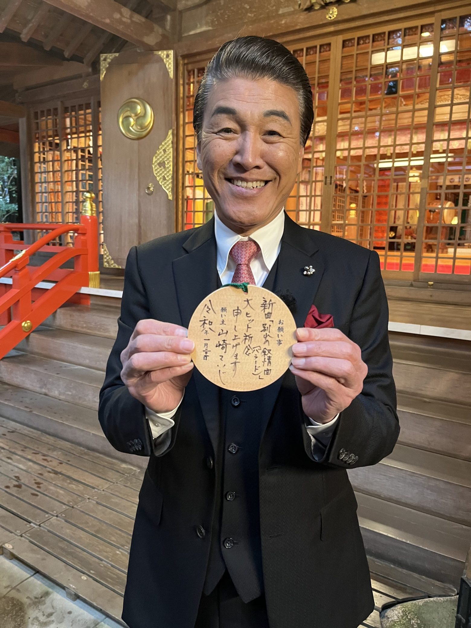 山崎ていじ 新曲「別れの叙情曲(バラード)」ヒット祈願 「歌手生活30周年を迎え、記念の新曲では“別れ模様”を男らしく力強く歌い上げます。」