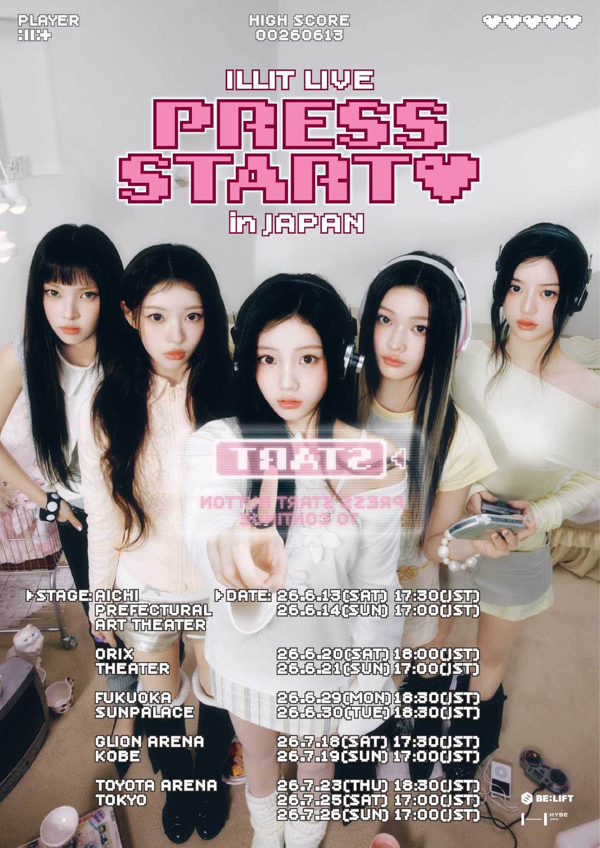 ”K-POP第5世代ガールグループ強者”ILLIT(アイリット)の初のライブツアーの日本公演「ILLIT LIVE ‘PRESS START︎❤’ in JAPAN」(以下「PRESS START︎」)の詳細が決定した。