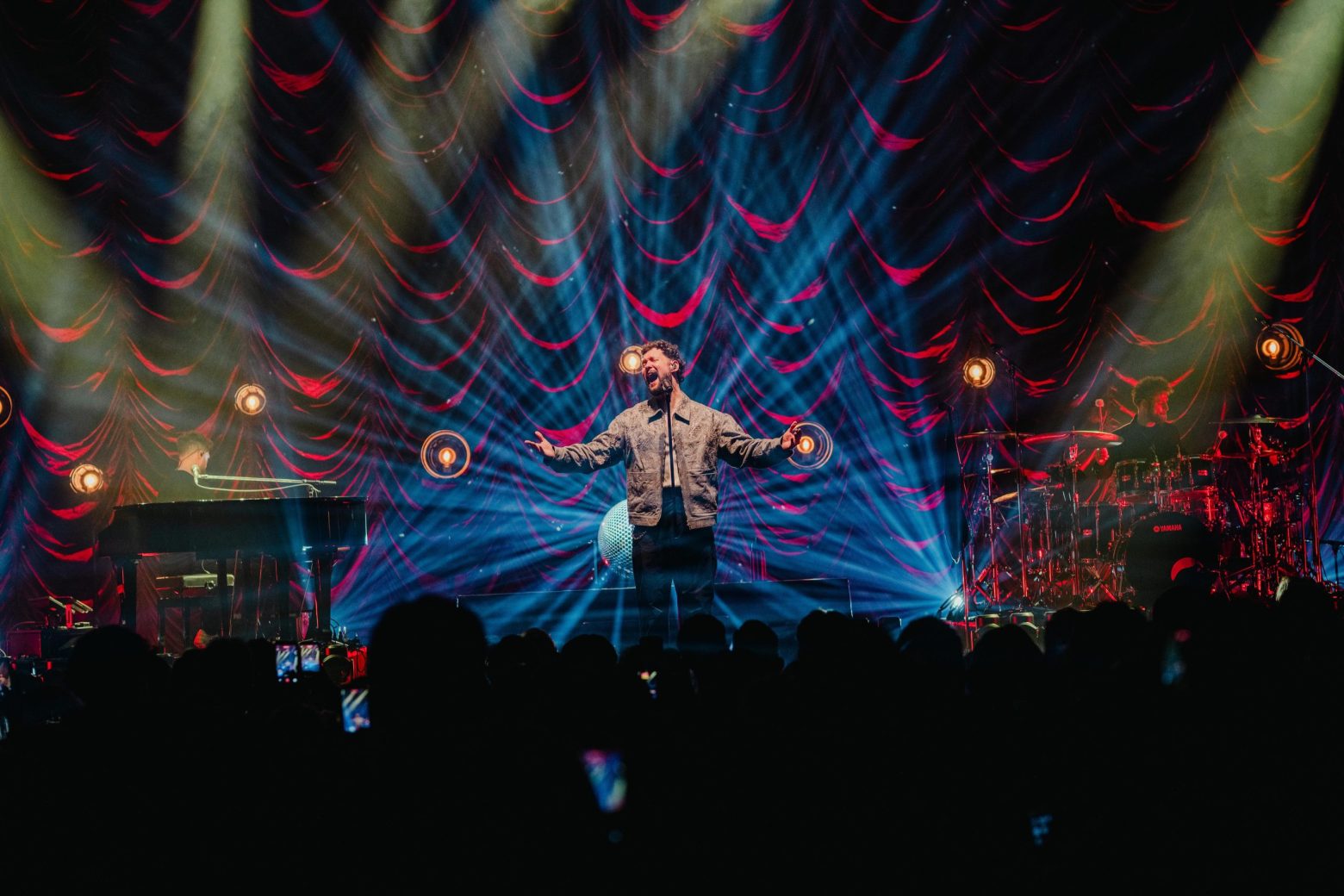 サプライズはその後も続き、全員がカウボーイハットを被って、女性のチェロ奏者とデュエットした「One More Drink」では、カントリー調の新境地を披露。「みんなはカントリー好きかな?」と不安そうに尋ねていたけれど、まったく違和感なく彼らしいサウンドに昇華されている。「Die For You」ではミラーボールを背にした演出が没入感を高めていた上、彼のボーカルも極上の輝きを放っていた。地声で、ここまでスムーズに低音から高音までを移行しながら歌えるシンガーは、そうはいないだろう。