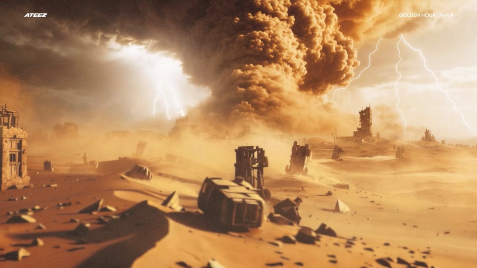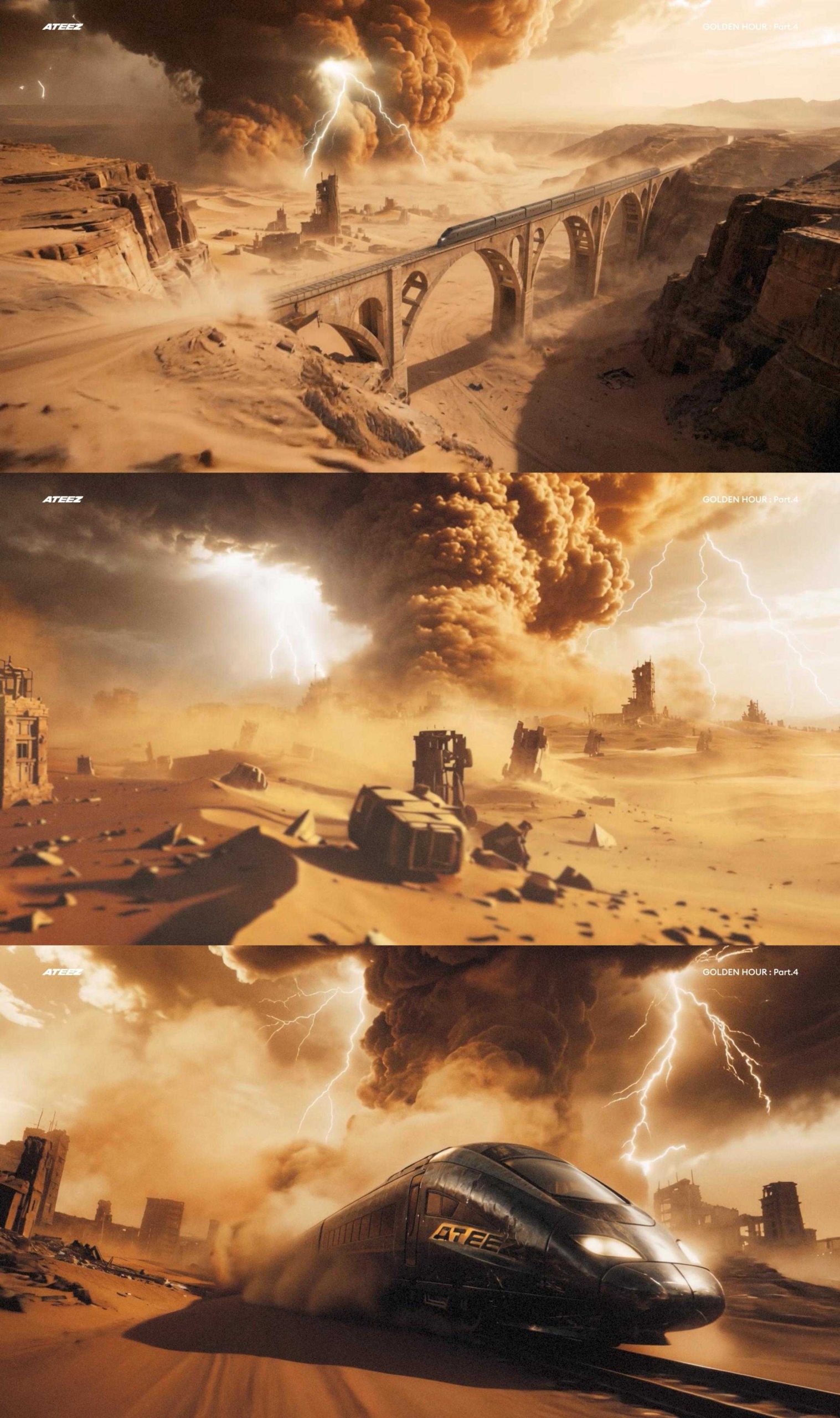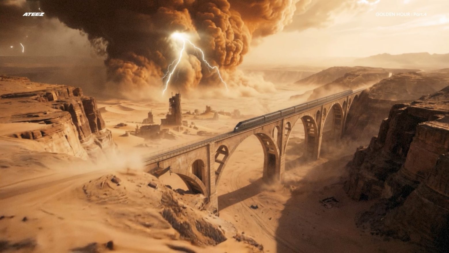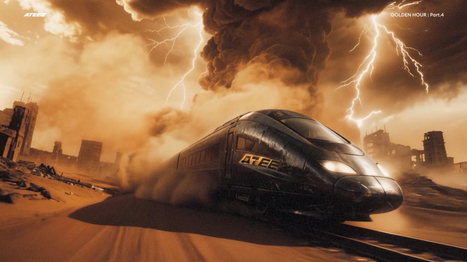 特に激しい砂嵐を突き抜け、止まることなく前進する列車の姿は、揺さぶられても信念を握りしめて前に進もうとするATEEZの物語が表現されている。