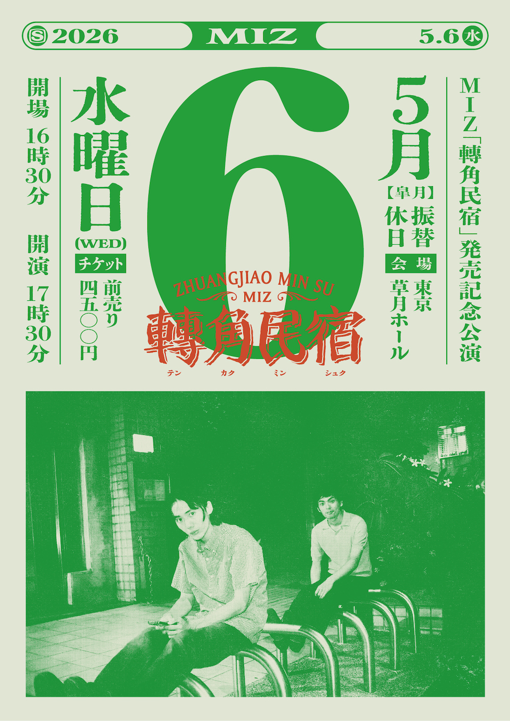 またMIZは、3rdアルバム「轉角民宿」のリリースを記念して、5月6日に東京・草月ホールでワンマン公演の開催を発表。チケットオフィシャル先行は2月3日~2月11日23:59まで受付をスタートした。MIZとしては最大キャパのワンマン公演となっている。