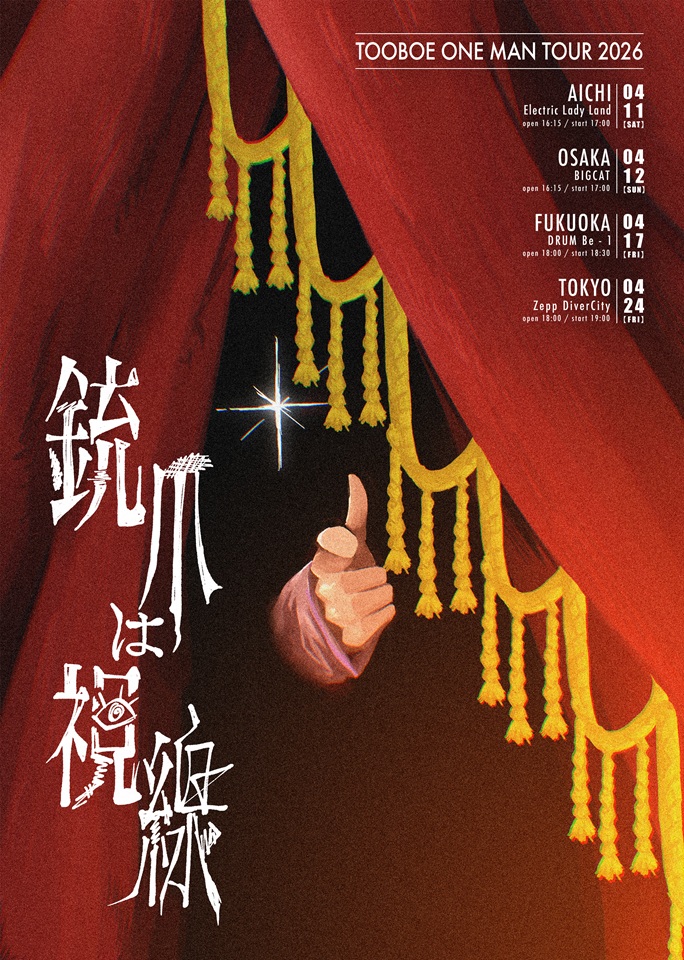 なお、全国ツアー「TOOBOE ONE MAN TOUR 2026 〜銃爪は視線(フリガナ:ひきがねはしせん)〜」の本編のチケットも好評発売中。2月23日23:59までぴあ独占先行を受付している。