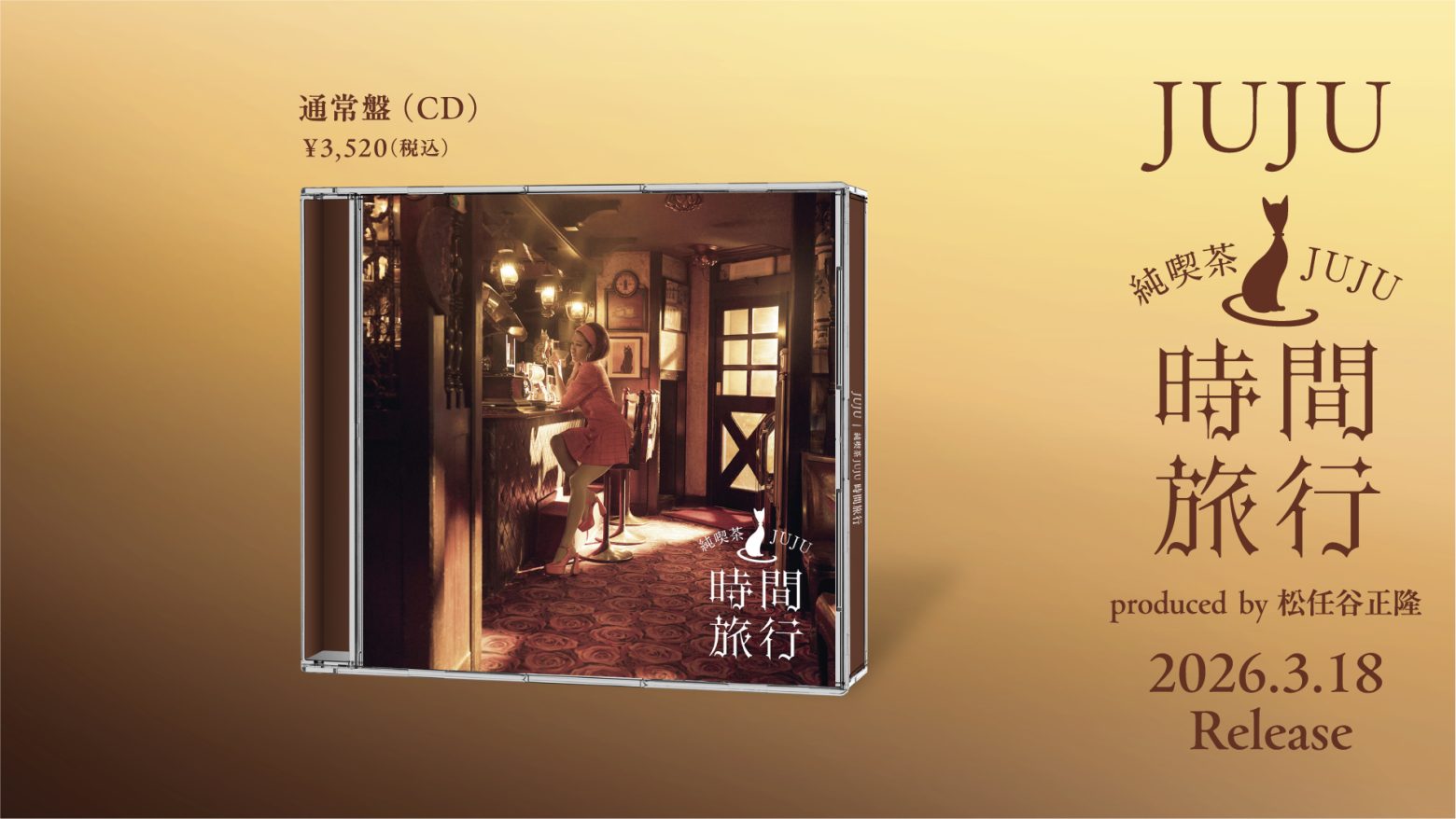 松任谷正隆氏が演出を手掛け、6月20日から開店する全国ホールツアー「JUJU HALL TOUR 2026 純喫茶JUJU「時間旅行」とあわせて、リリースを心待ちにしたい。