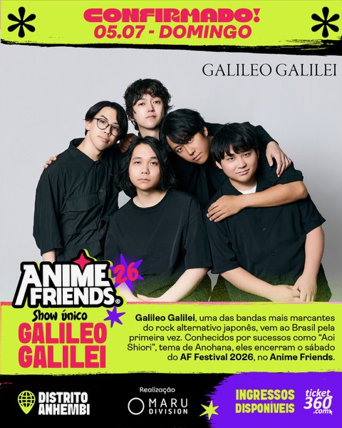 Galileo Galileiは、3月1日に最終話の放送を控えるアニメ「青のオーストラリア Season2」のオープニングテーマ「アマデウス」を手掛けるなど、アニメ作品とのコラボレーションを数多く展開している。その活動は国内に留まらず、2026年7月にブラジル・サンパウロ市で開催されるアニメフェス「Anime Friends 2026」への出演が決定した。