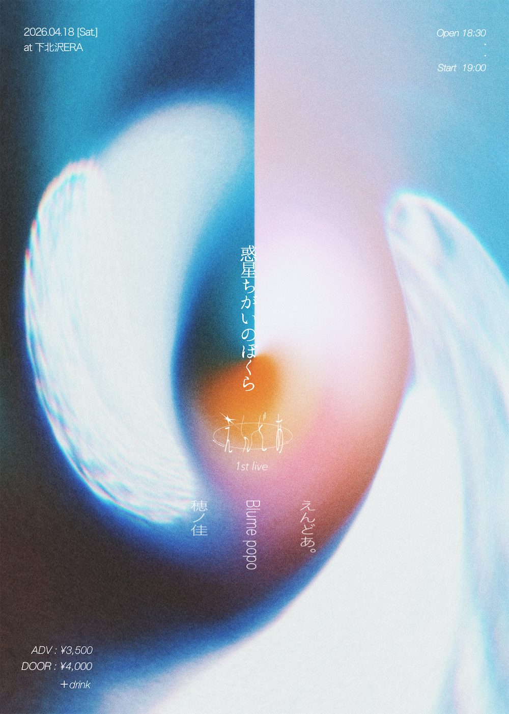 また、4月18日には下北沢ERAにて1stライブ「惑星ちがいのぼくら」を開催する。本公演は、ゲストにBlume popo、穂ノ佳を迎えた3マン形式で実施される。チケットは3月14日10:00より一般発売が開始される。