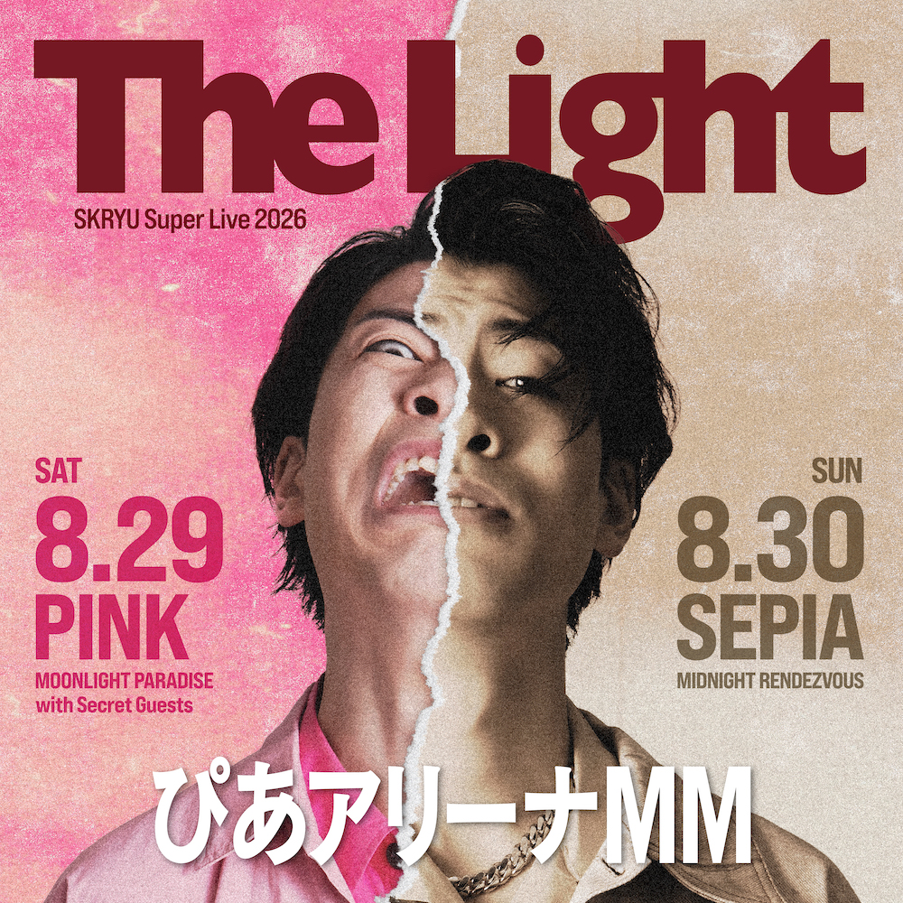 幕張メッセでのワンマンライブを経て、メジャーデビューEP「絶」を携え全国5都市7公演を完走したSKRYU。今回発表されたのは、2026年8月29日・30日に開催されるSKRYU Super Live 2026「The Light」だ。