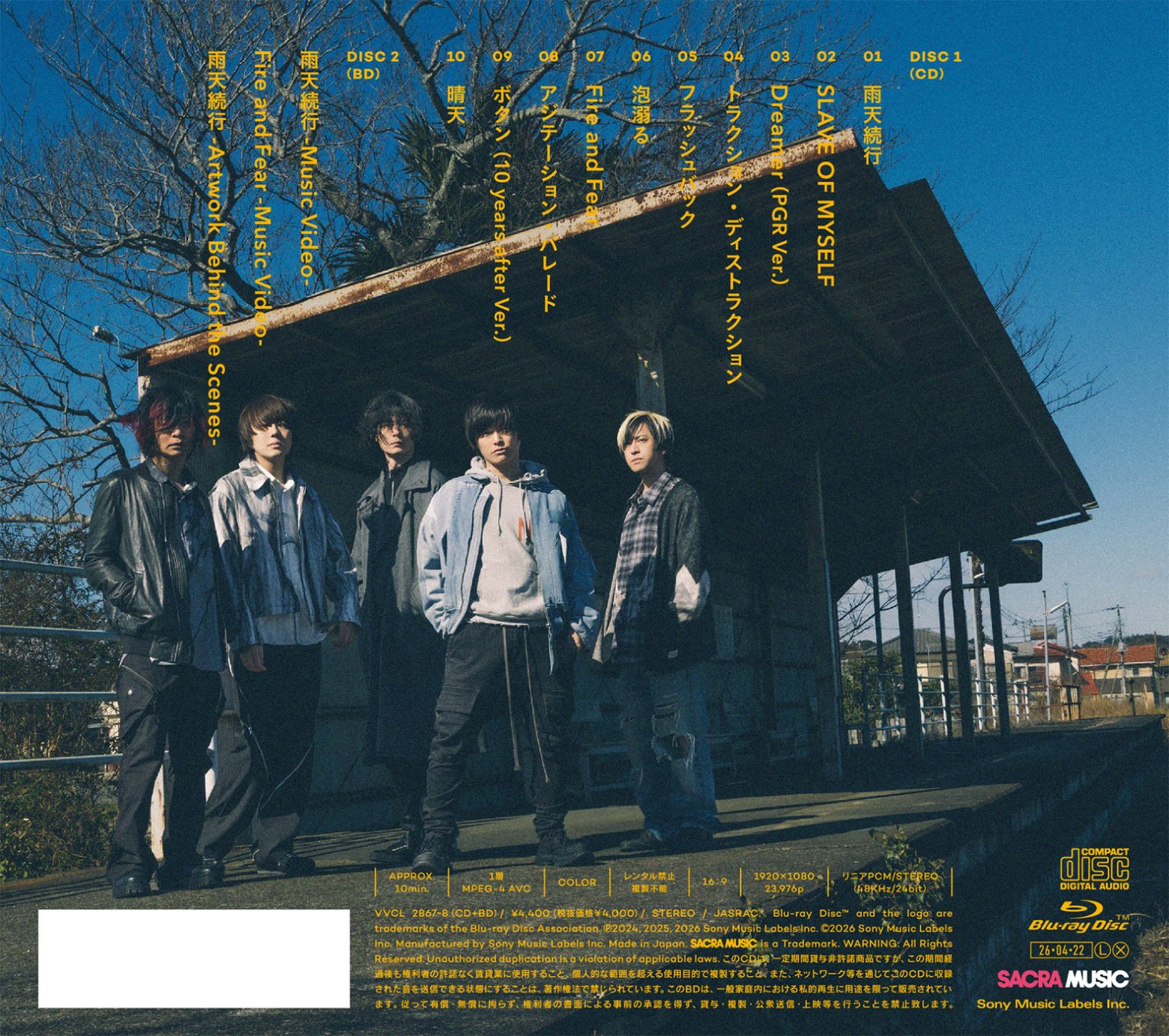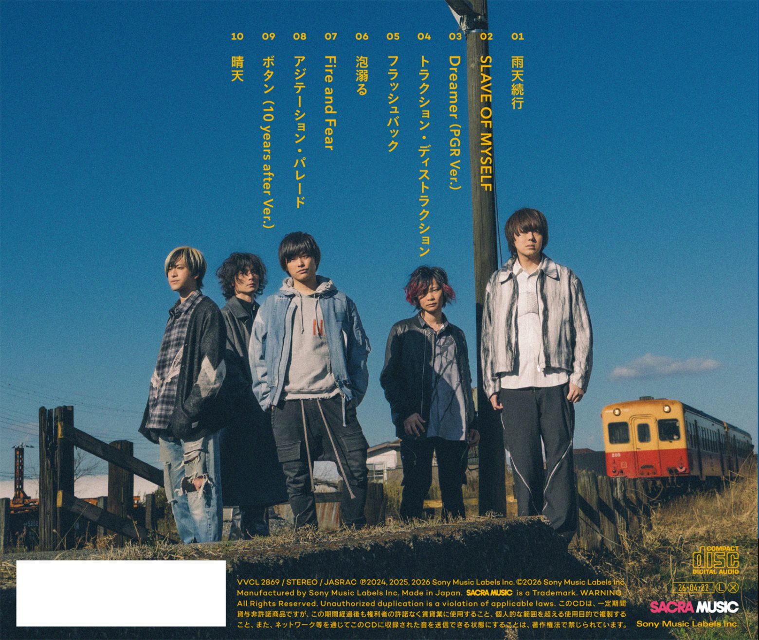 アルバムには、リードトラック「雨天続行」をはじめ、TVアニメ「杖と剣のウィストリア」オープニング主題歌「Fire and Fear」、Nintendo Switch用ソフト「UN:LOGICAL」オープニングテーマ「フラッシュバック」など、10周年に相応しい全10曲を収録。「トラクション・ディストラクション」「泡溺る」「晴天」、そして神田ジョン(Gt)が作編曲を手掛けた「SLAVE OF MYSELF」が書き下ろしの新曲として並ぶ。