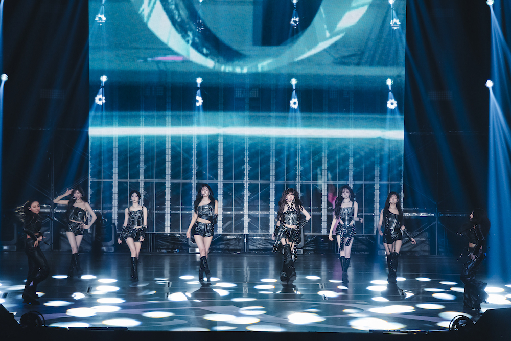 間髪を入れずに披露した「XOXZ」「Baddie」といったナンバーでは、タイトなリズムとクールなラップで独自の美学をアピール。さらにシンセサイザーのアルペジオに導かれるように歌う「Ice Queen」、シャッフルビートを軸にしたサウンドで消滅と誕生が共存する世界観を表現した「BLACKHOLE」と、開幕からわずか数曲で会場をIVEだけのカラーに染め上げる力量に驚いてしまう。