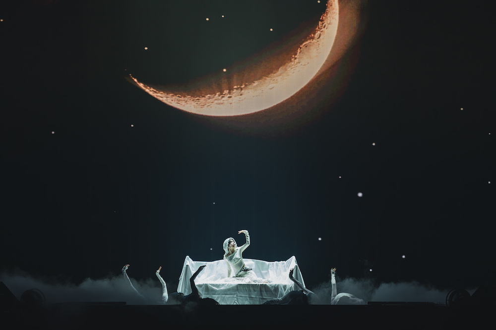 6人の明るい第一声に反応して客席では大きな声援が飛び交う。短い挨拶を終えると、ブラスセクションの音が合図となって「TKO」がスタート。通称“808(ヤオヤ)”と呼ばれるレトロなリズムマシンを使ったトラックに乗りながら歌い踊った後は、トライバルなムード満載のダンスポップ「Holy Moly」、チェスの巨大な駒をバックに妖艶なしぐさで「私と一緒に来て」と誘う「My Satisfaction」と、インパクトのあるナンバーを連発した。