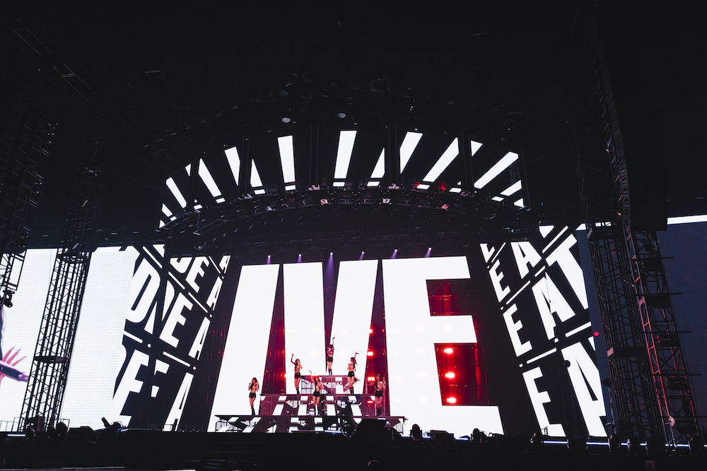 「WOW」「FLU」を歌いながらファンに感謝の気持ちを伝えると、再びMCタイムに。ソロナンバーの感想を語り合いながら和気あいあいとした時間を楽しんだ後は、ラストへ向かって勢いのあるナンバー中心のステージが始まった。「ATTITUDE」はアメリカの女性シンガーソングライター、スザンヌ・ベガの「トムズ・ダイナー」をサンプリングした楽曲だが、たとえそれを知らなくても華麗なメロディラインに心奪われるダンスポップに仕上がっている。この曲をきっかけにヒートアップした観客をさらに盛り上げようと、「LOVE DIVE -Japanese ver.-」「REBEL HEART」「I AM」といったキラーチューンを連発。重低音で揺れる巨大な会場は、瞬く間にダンスフロアと化した。