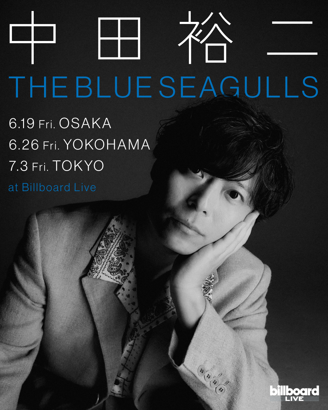 これまでも多彩な編成でビルボードライブのステージに立ってきた中田だが、今回は小松シゲル(Dr / NONA REEVES)ら気心知れた辣腕ミュージシャンを揃えた総勢5名のバンド編成「THE BLUE SEAGULLS」として登場する。