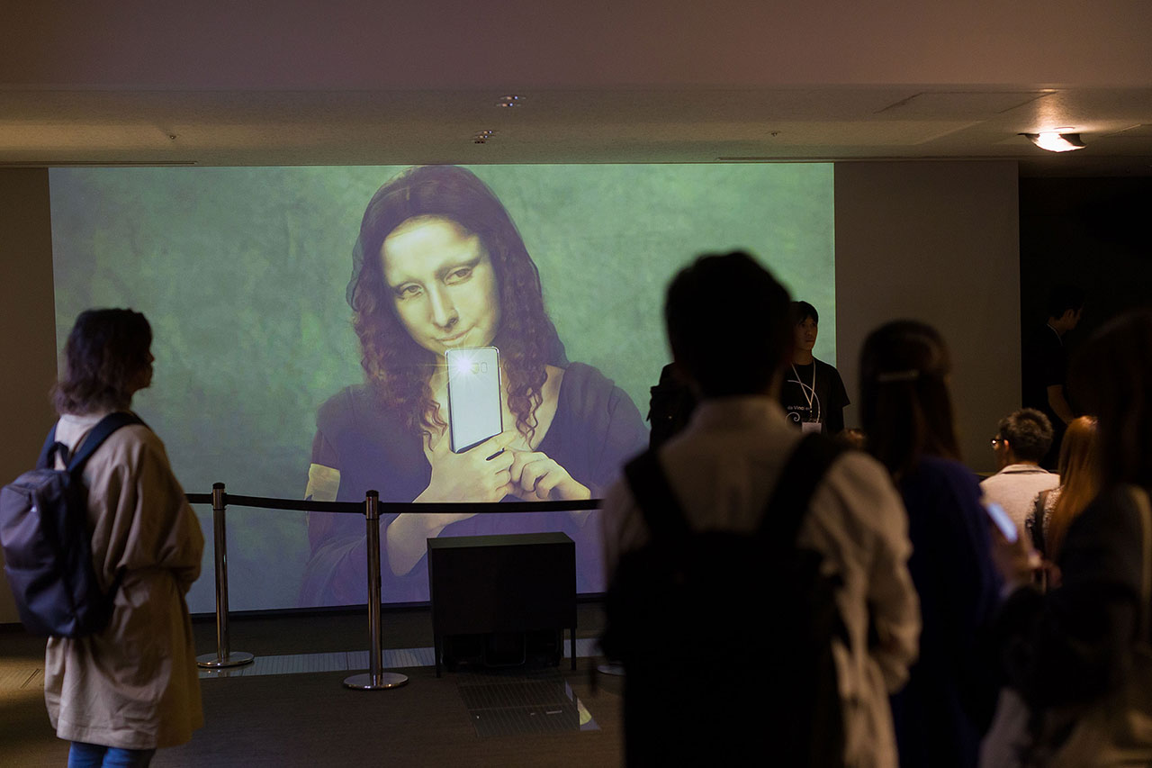 空間には、ひとつ椅子が置かれ黄金比をかたどった手すりが設置されており、椅子の背景には、たくさんの線で作られた映像が映し出される。参加者はスマートグラスをかけ、誰も座っていない椅子を見るとモナ・リザの絵画が現れ、手すりをたよりに歩いて行くとモナ・リザの絵画の世界に入り込む。するとモナ・リザはこちらを見て手を振り、モナ・リザの前を過ぎ振り返るとカシャッとスマホを片手に写真に撮る彼女の姿も。