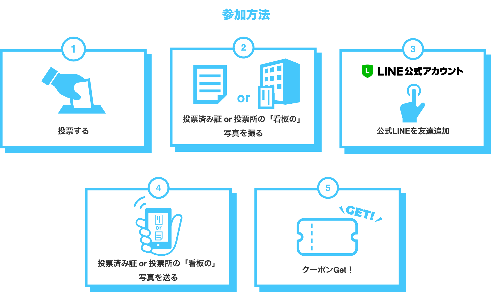 そして、衆院選の投票を行うと本プロジェクトに賛同する全国の100を超える提携店舗の特別なクーポンを利用することもでき、様々なモノやサービスが無料/割引になる。本企画のゴールドスポンサーにはカラオケ店舗「JOYSOUND」を運営するエクシングが就任し、直営店のルーム料金が30%OFFになるクーポンが発行される。