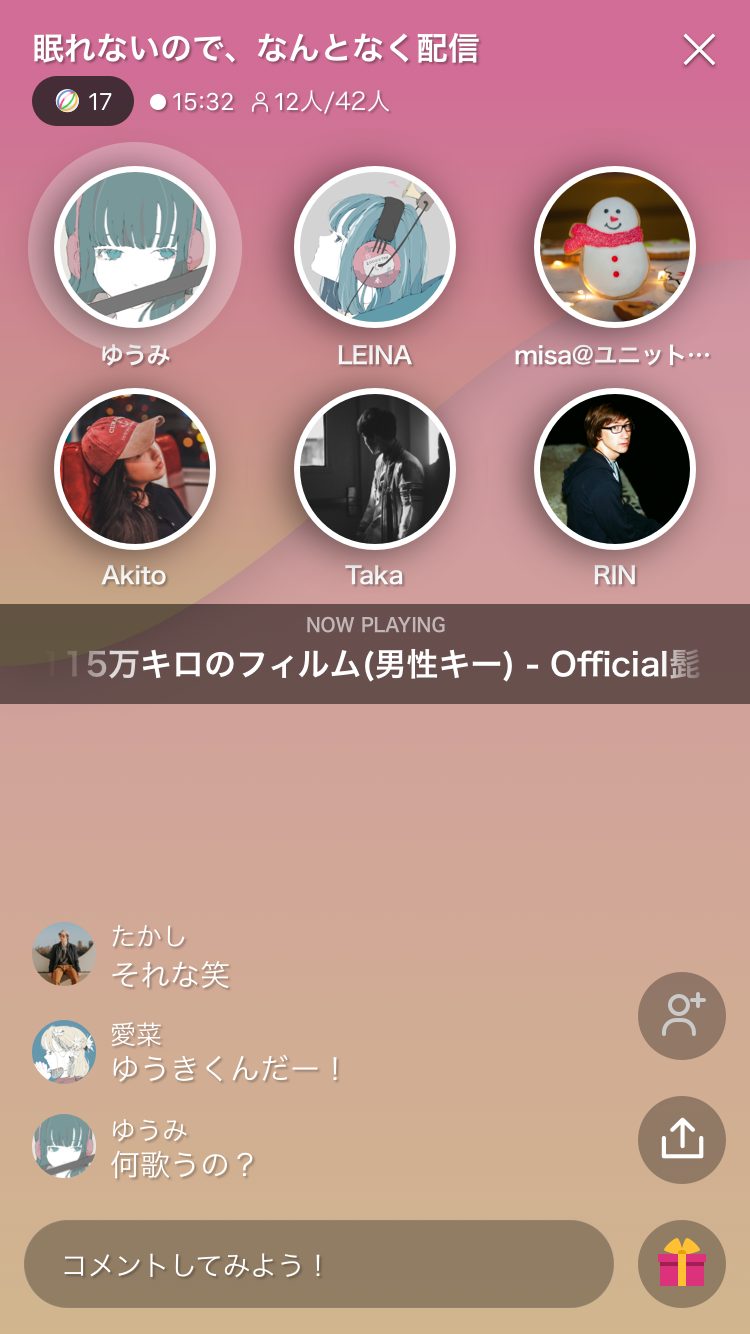 また、誰でも気軽に入室でき、リスナーは挙手をしてゲストとして登壇できる。リスナーは、コメントをしたりギフトを贈ったりしながら配信を楽しむことができるようになっている。