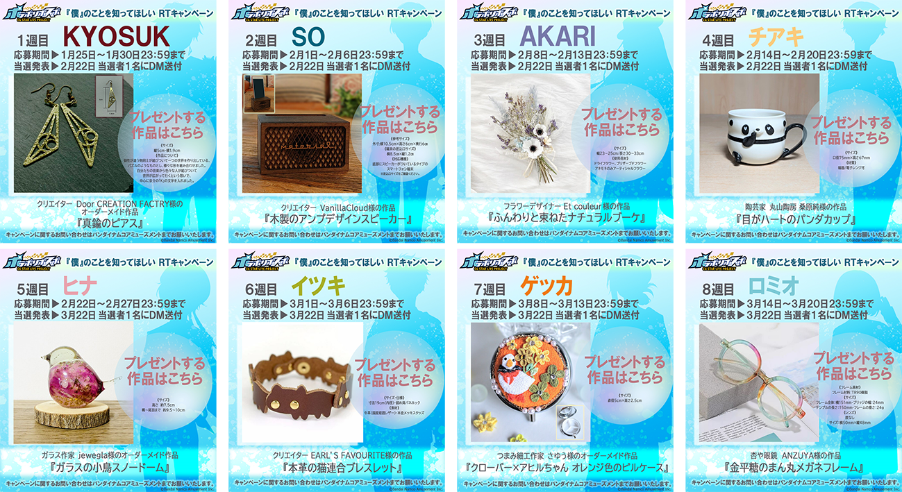 キャラクタービジュアル原案として、人気イラストレーターの赤倉氏を起用。個性の異なる2つのバンドグループ、それぞれに所属する8人のアーティスト(キャラクター)たちを、豪華声優陣と話題のVTuberグループ「ホロスターズ」が担当する。