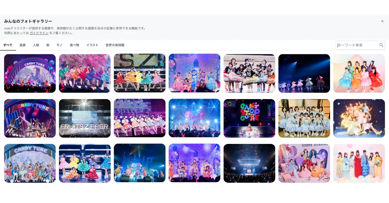 noteは、アソビシステムが手がけるアイドルプロジェクト「KAWAII LAB.」所属グループの公式写真を、記事の見出し画像に設定できるようになったと発表した。写真は、クリエイターが提供した画像を自分の記事の見出し画像にできる機能「みんなのフォトギャラリー」から設定できる。