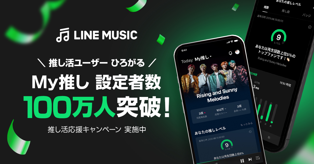 音楽ストリーミングサービスLINE MUSICは11月4日、2025年6月に提供を開始した「My推し」機能の累計設定者数が100万人を突破したことを発表した。