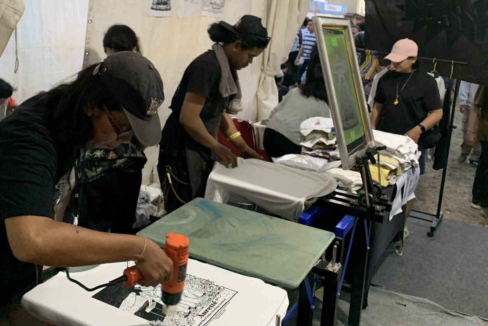 toconomaはメインステージの一つ「NANABAステージ」に登場。また、現地のスクリーンプリントのアーティスト団体「Krack!」とのコラボレーションも実現し、オリジナルデザインを用いたワークショップを開催した。